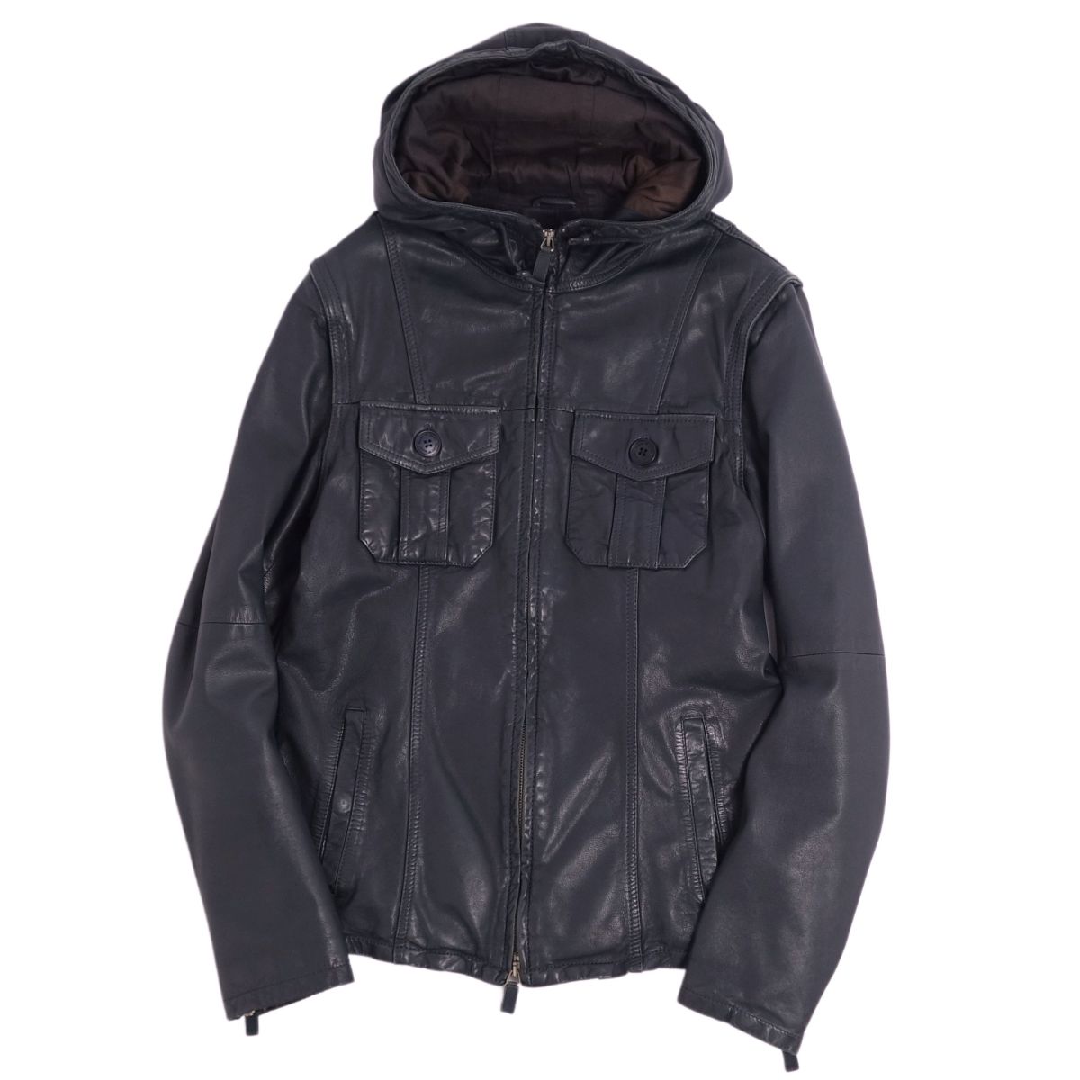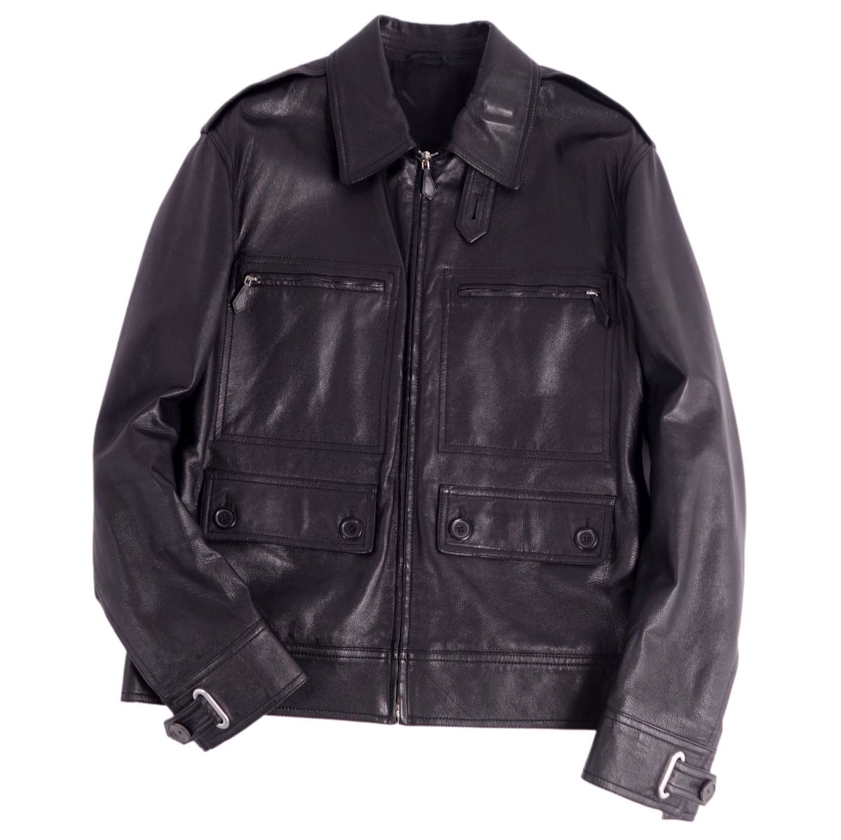 【美品】エルメス HERMES ジャケット ベルテッド レザ……