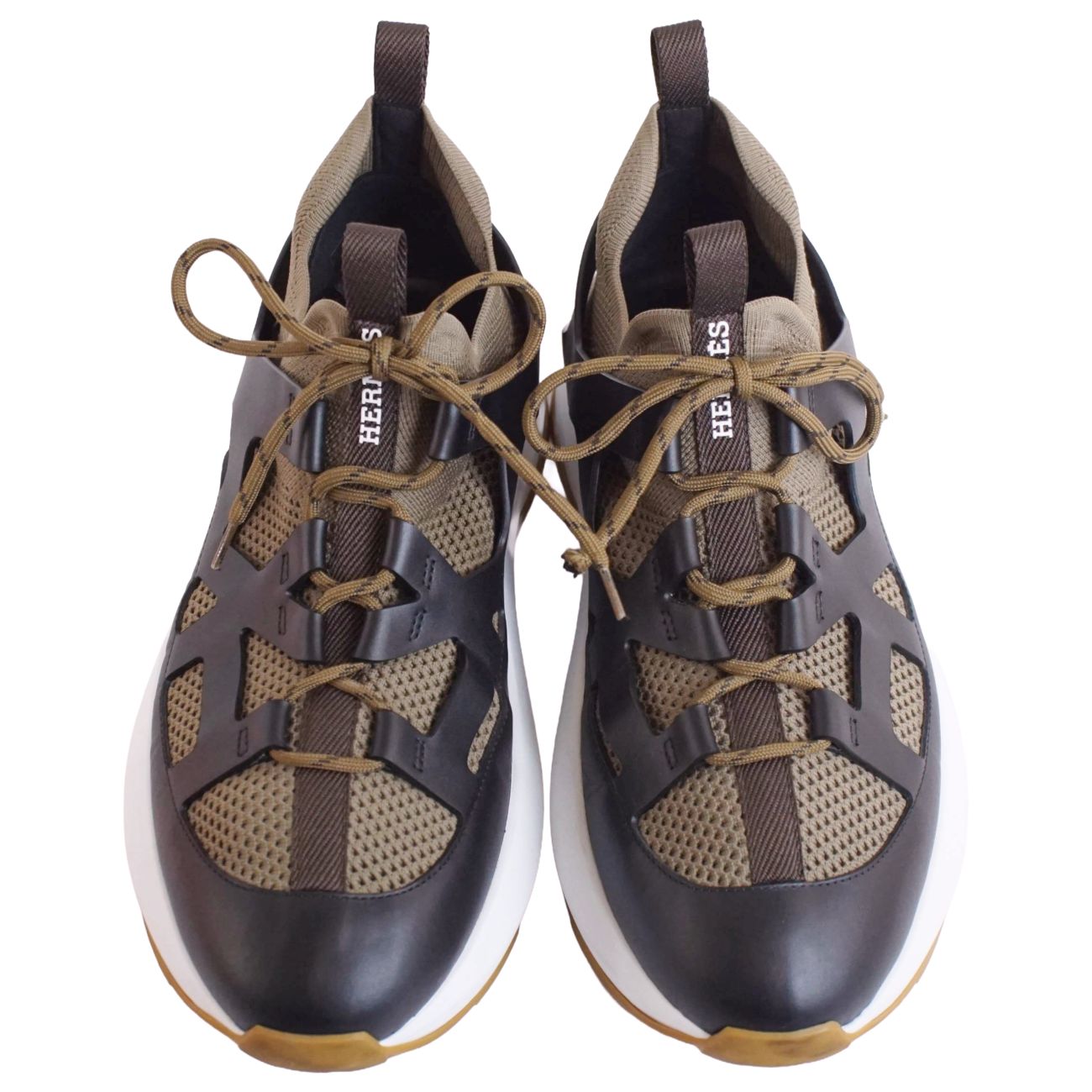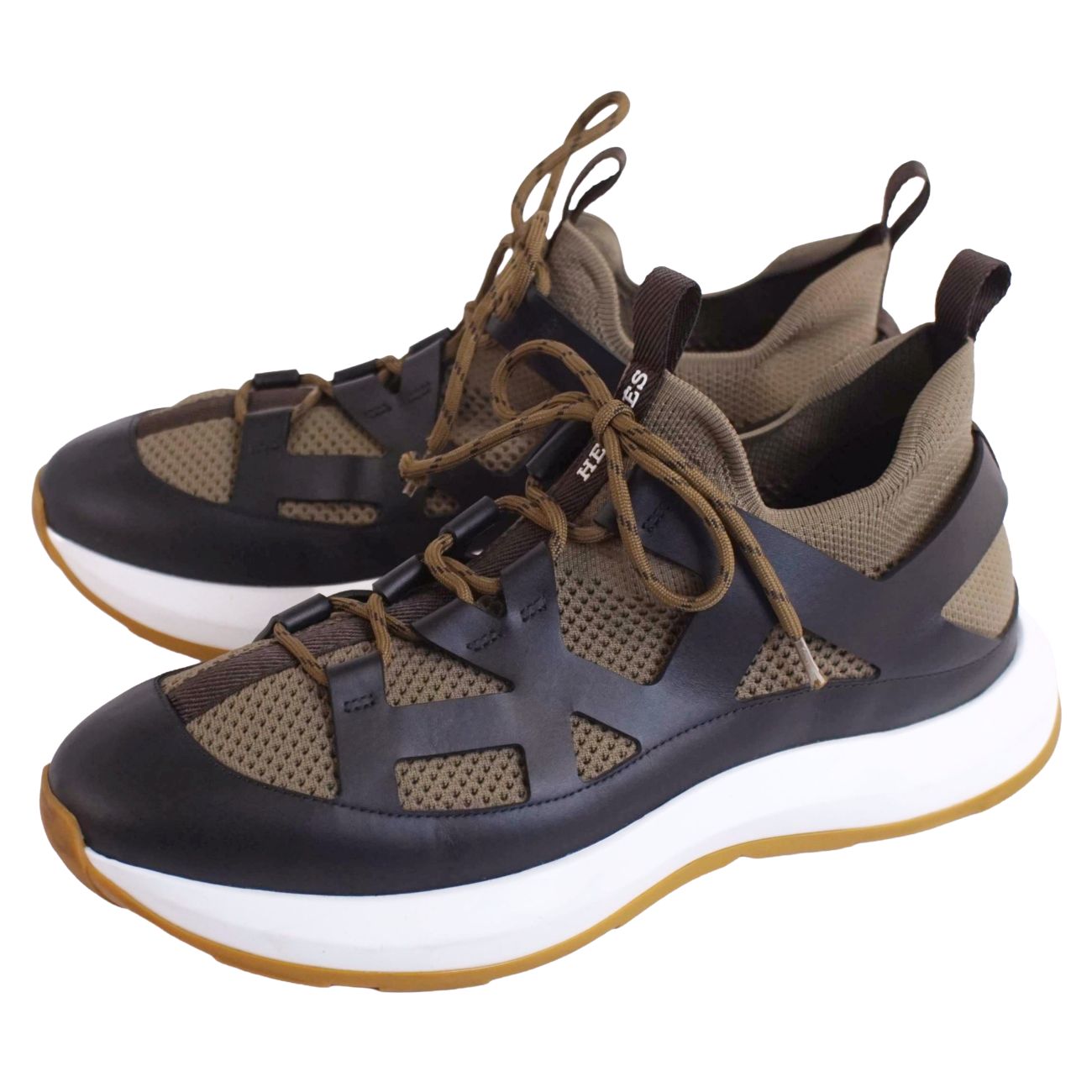 商品名 【美品】エルメス HERMES スニーカー 2025 カタナ KATANA ニット レザー シューズ 靴 メンズ イタリア製 43(28cm相当) カーキグリーン【中古】