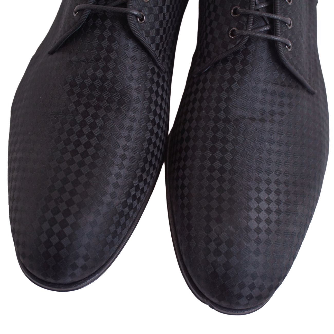 商品名 【新古品】ルイヴィトン LOUIS VUITTON ダービーシューズ ソルフェリーノ ライン ダミエ サテン シューズ 靴 メンズ イタリア製 7.5(26cm相当) ブラック【中古】