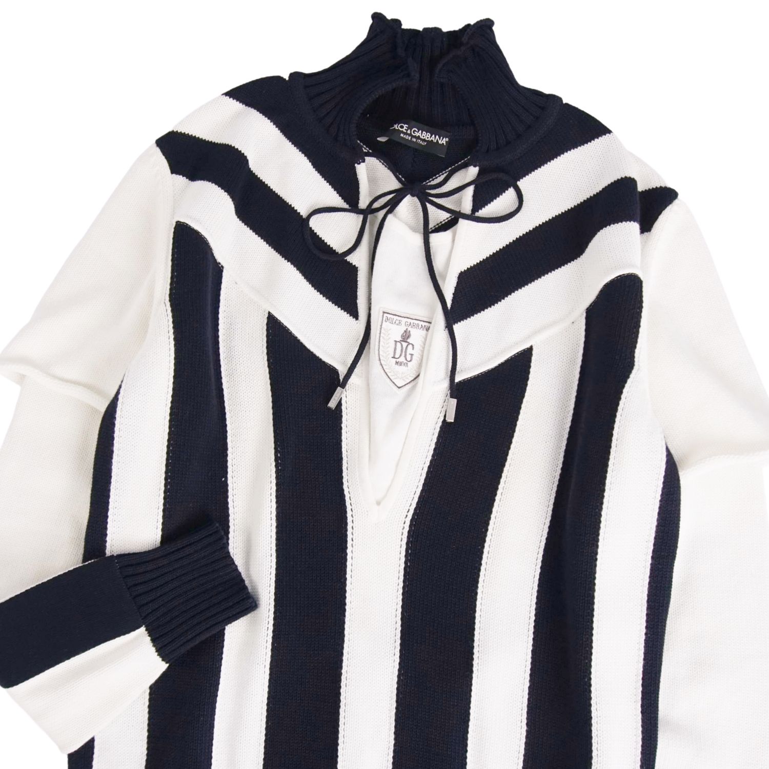 ドルチェ&ガッバーナ DOLCE&GABBANA ニット セーター プルオーバー ロングスリーブ 長袖 コットン トップス メンズ ホワイト/ネイビー サイズ48(M相当)