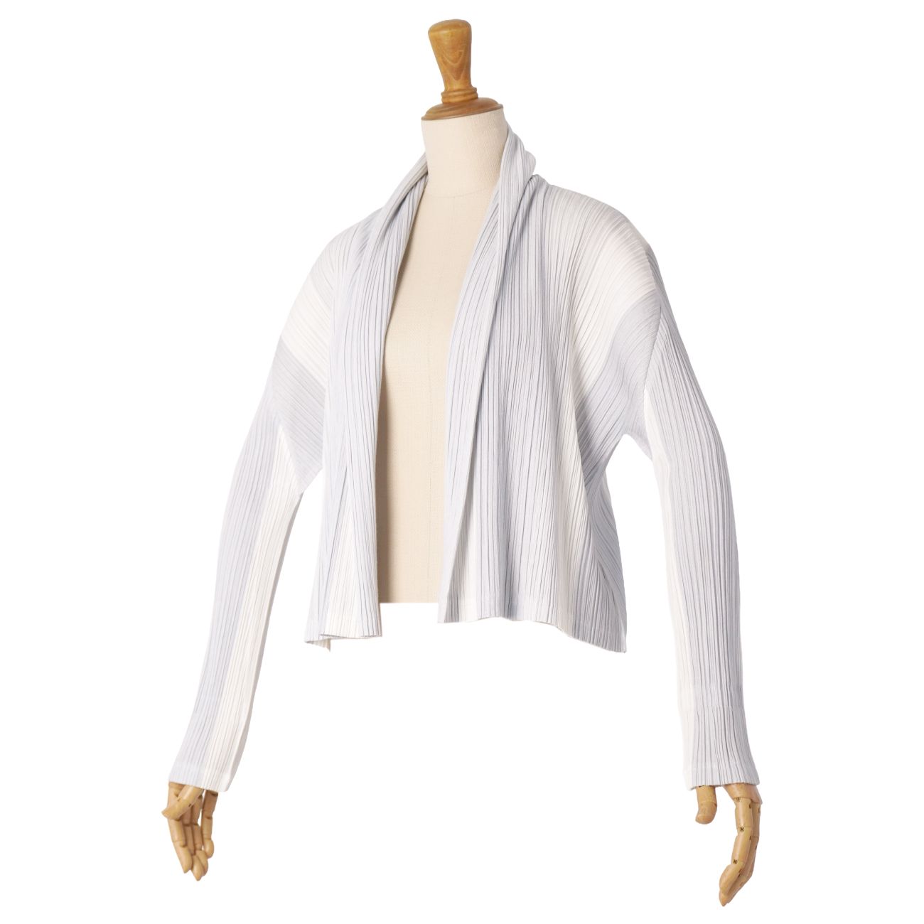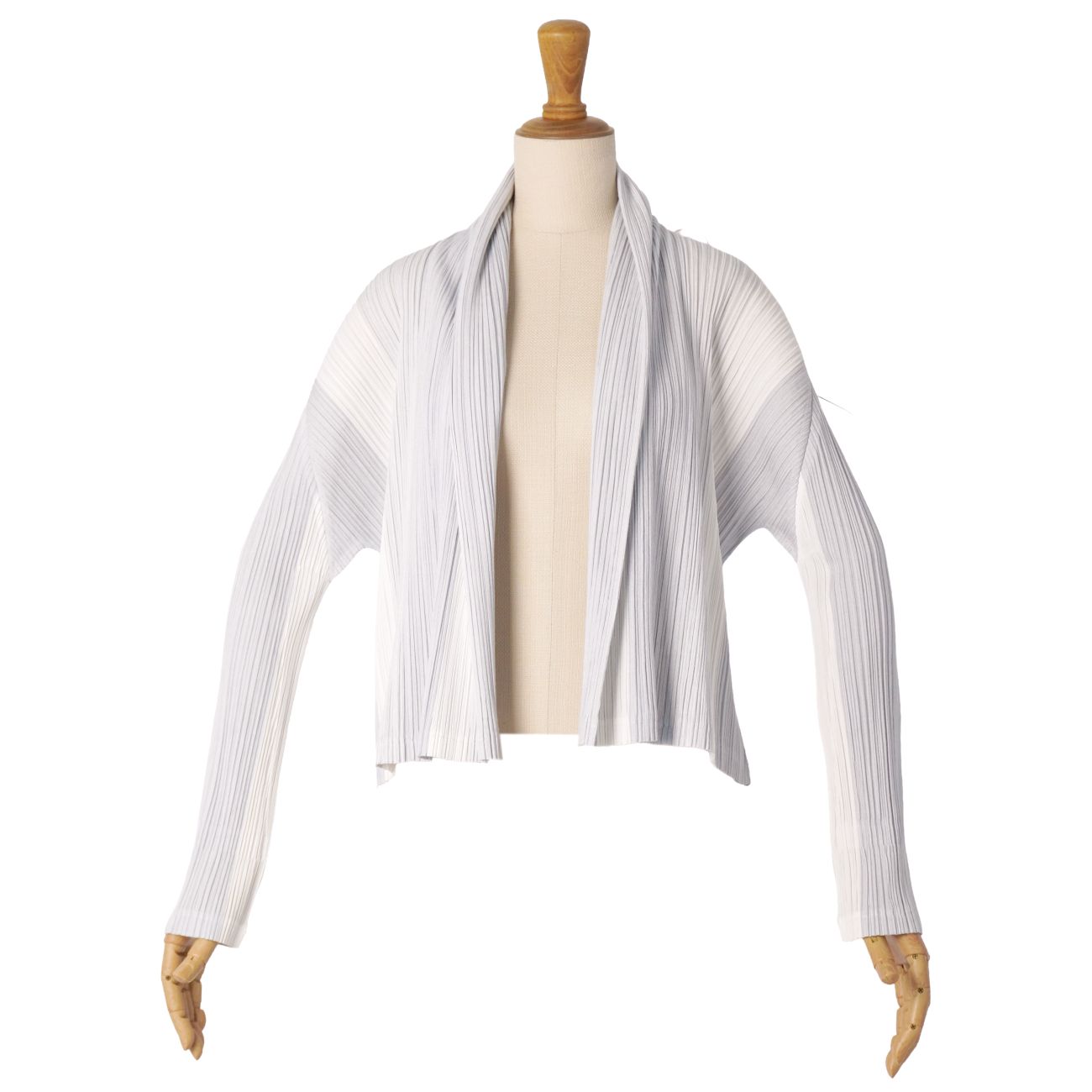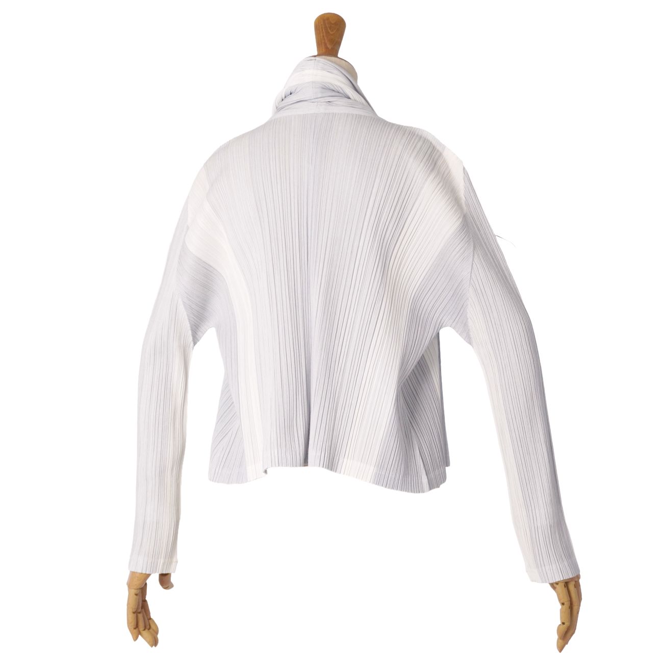 ・1本の糸から素材を開発し、服の形に縫製した後にプリーツをかける独自の手法によるプロダクト、ISSEY MIYAKE『PLEATS PLEASE』のカーディガンです♪
