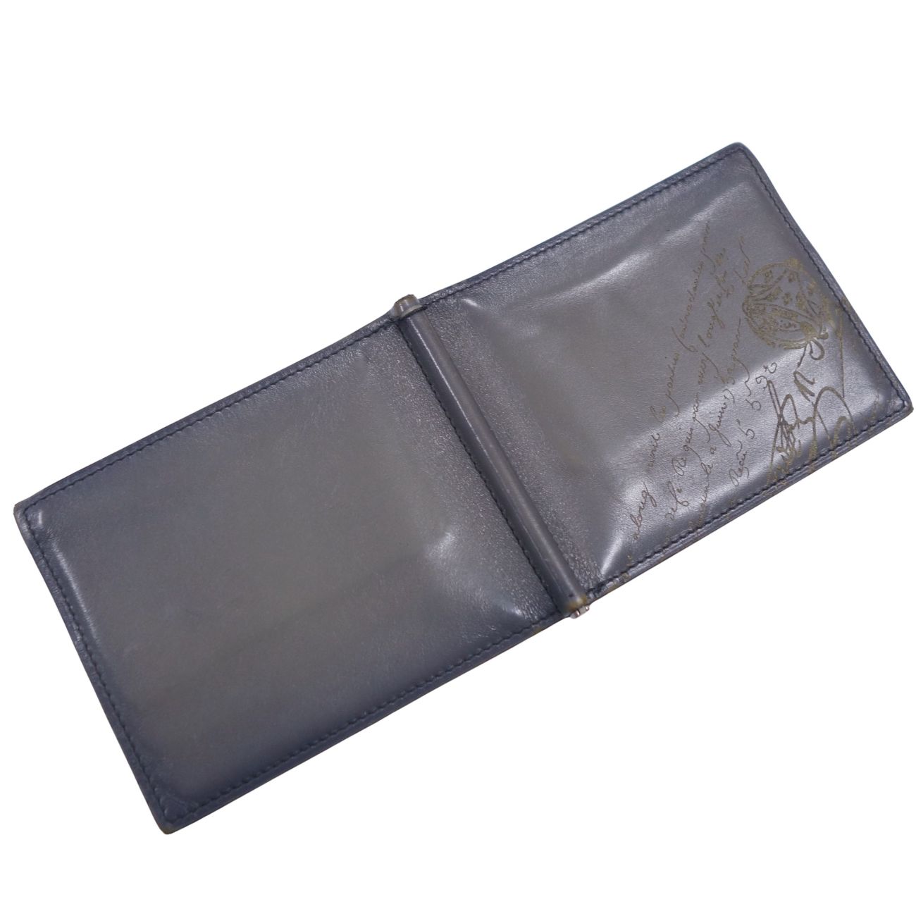 ベルルッティ BERLUTI 財布 マネークリップ コンパクトウォレット カリグラフィ スクリット レザー メンズ イタリア製 グレー サイズ-
