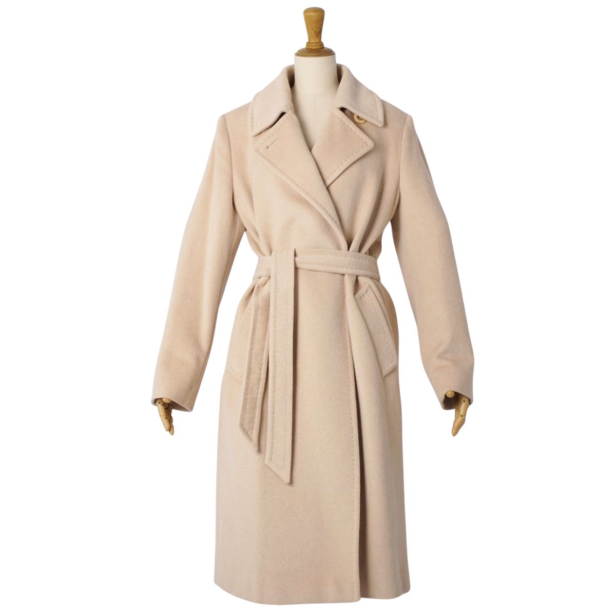 マックスマーラ Max Mara STUDIO コート ベルト付き ロングコート アンゴラ シルク ウール アウター レディース イタリア製 ベージュ サイズJI42 USA8 GB10(L相当)