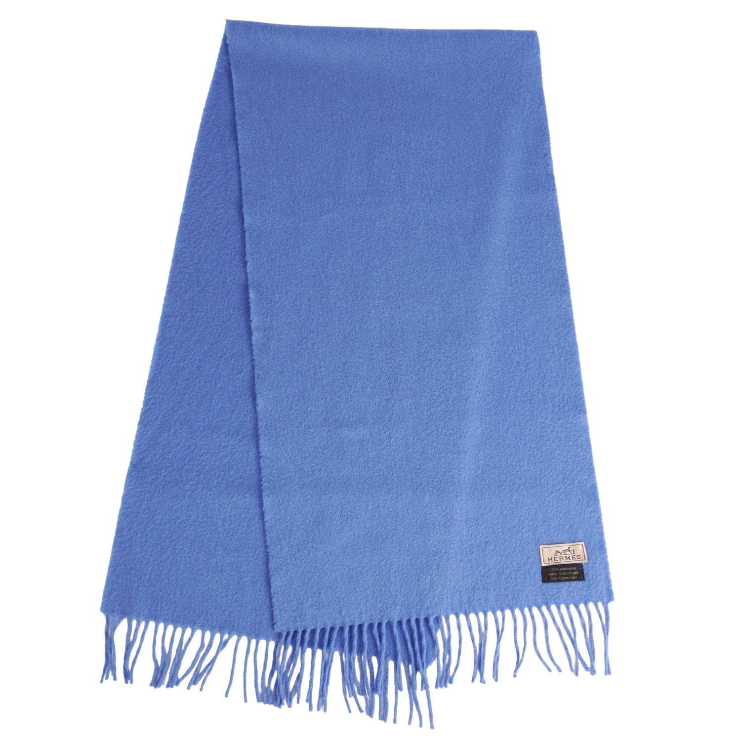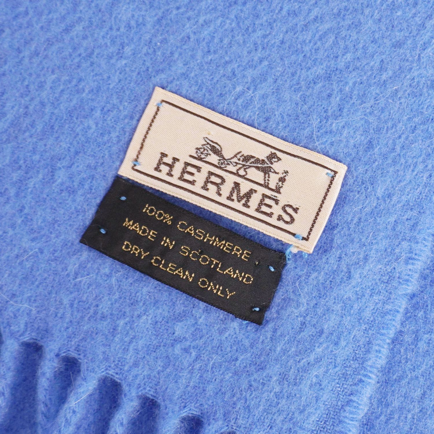 エルメス HERMES マフラー ストール ショール フリンジ カシミヤ100% スコットランド製 ユニセックス ブルー サイズ-