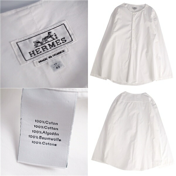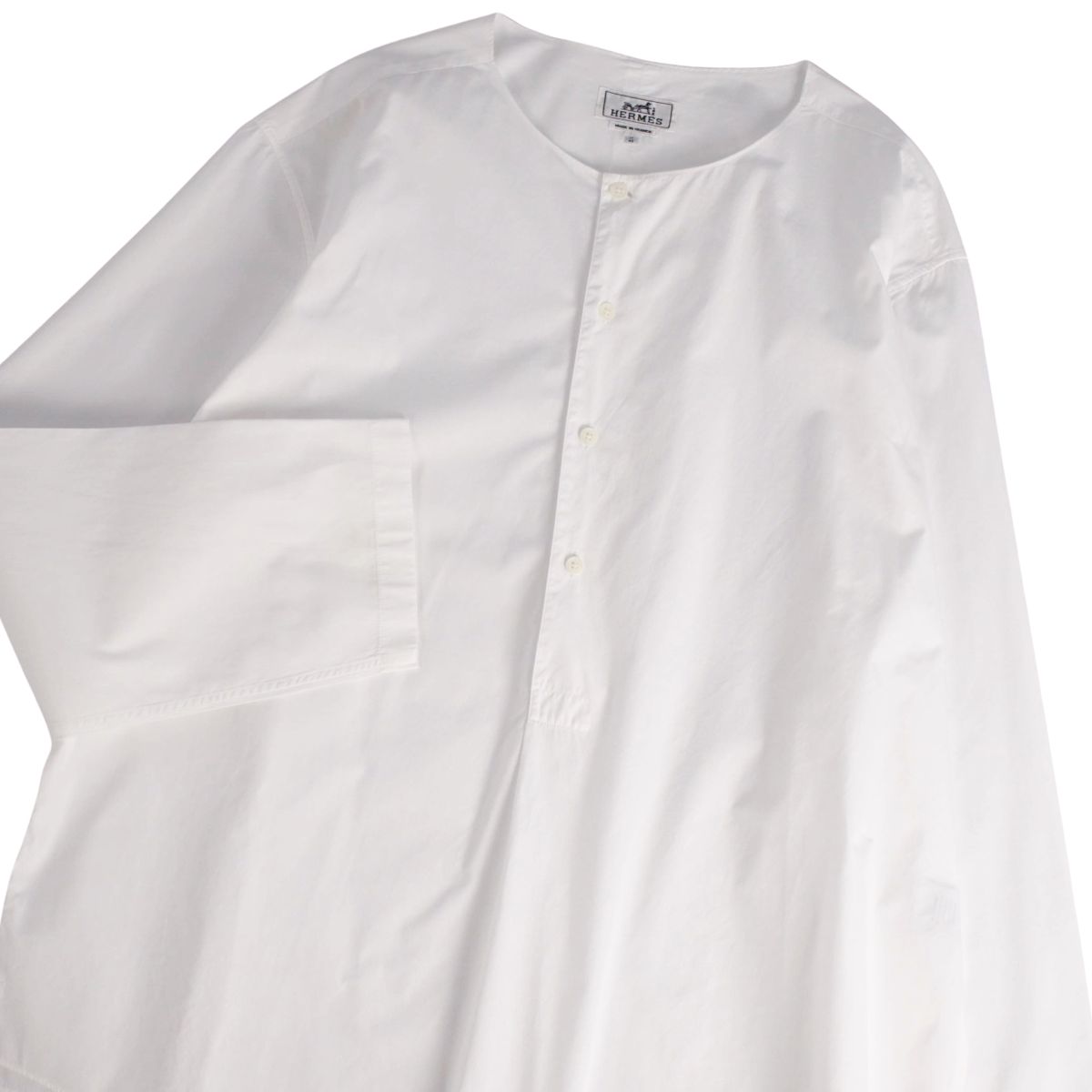 エルメス HERMES シャツ ノーカラー ロングスリーブ 長袖 コットン トップス メンズ フランス製 ホワイト サイズ43/17