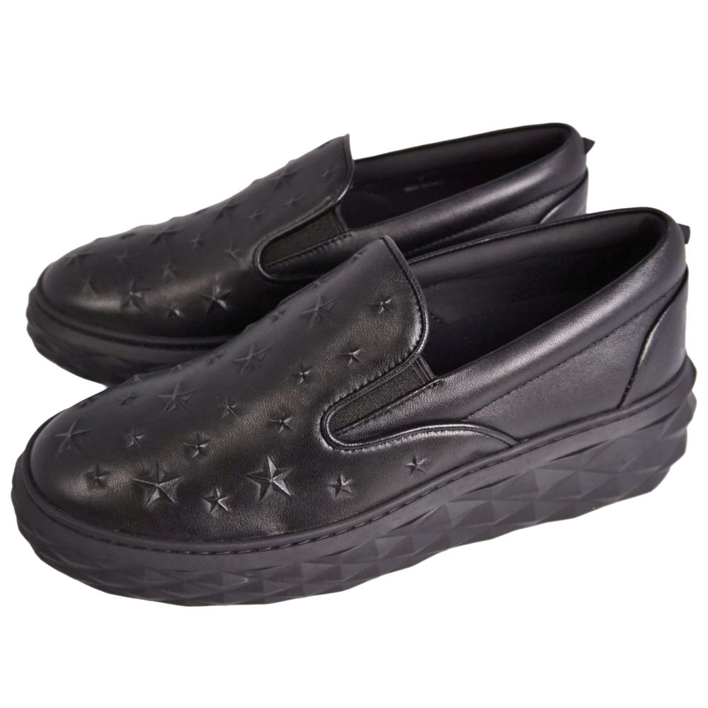 ジミーチュウ JIMMY CHOO スニーカー Diamond ダイアモンド スリッポン スター レザー シューズ 靴 レディース ブラック サイズ37(24cm相当)