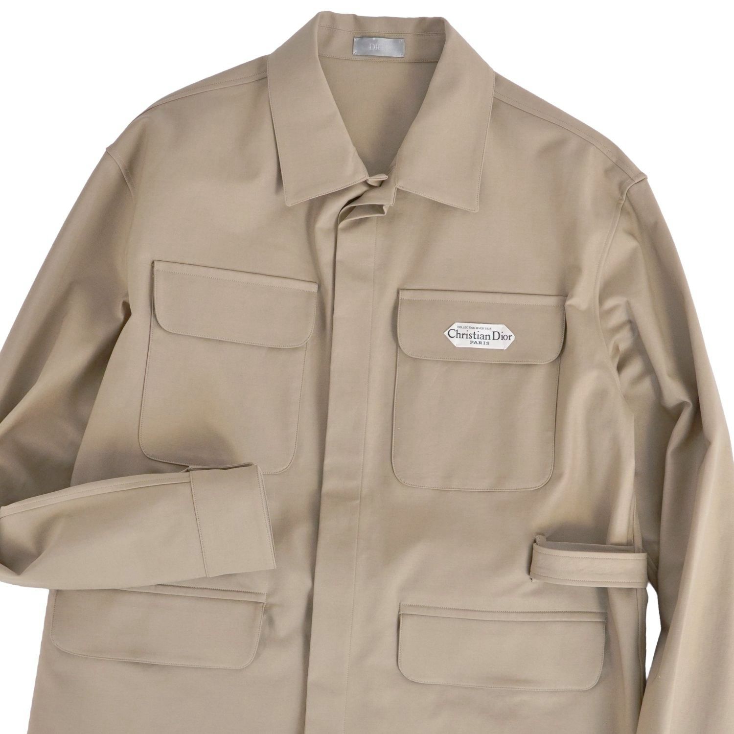 商品名 【新品同様】ディオールオム DIOR HOMME 25AW サファリシャツ ジャケット ロングスリーブ 長袖 シグネチャータグ ロゴ コットン トップス メンズ 38(S~M相当) カーキベージュ【中古】