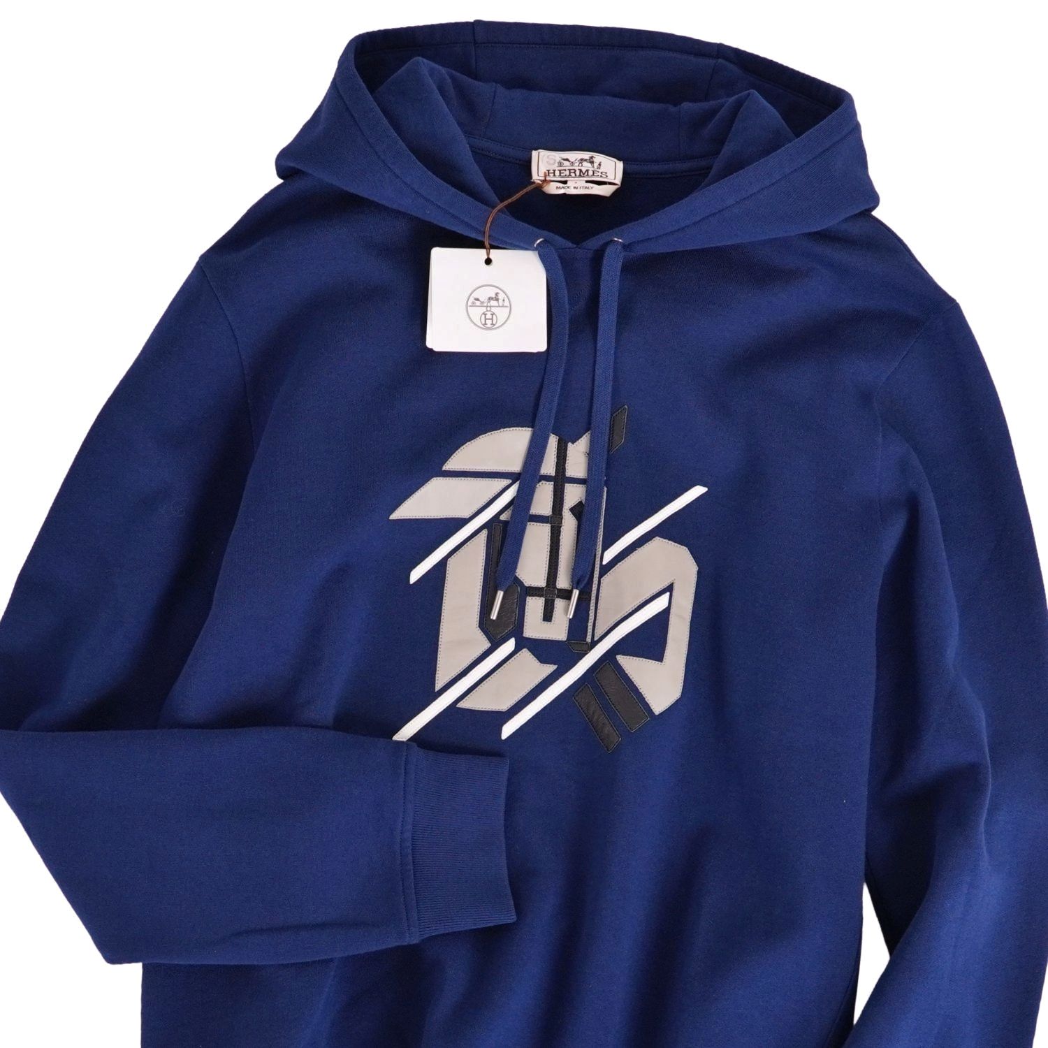 | 商品名 | 【新品同様】エルメス HERMES 23AW スウェット パーカー プルオーバー シュヴォー アン シンメトリー レザーパッチ トップス メンズ S ネイビー【中古】 |