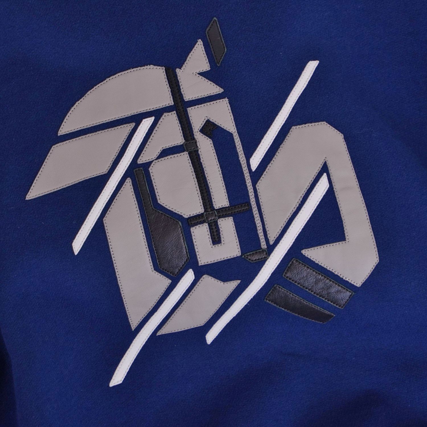 エルメス HERMES 23AW スウェット パーカー プルオーバー シュヴォー アン シンメトリー レザーパッチ トップス メンズ ネイビー サイズS