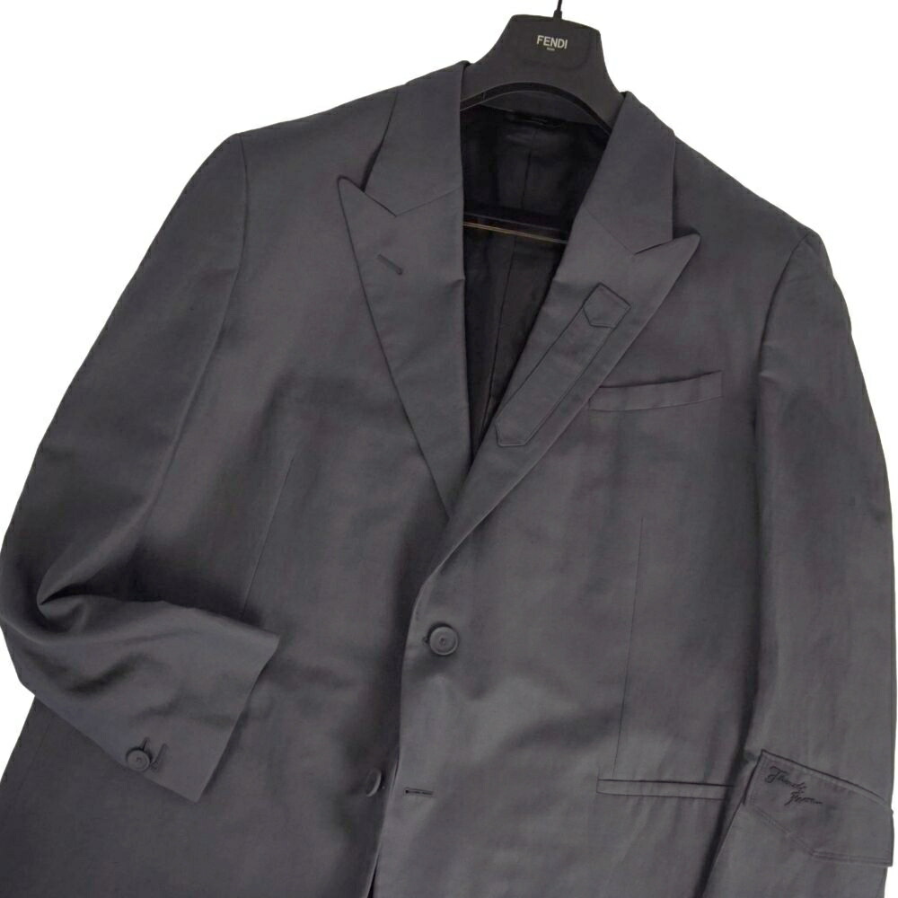 商品名 【極美品】フェンディ FENDI ジャケット 2021 テーラード リネン コットン アウター メンズ イタリア製 58(XXXL相当) ダークグレー【中古】