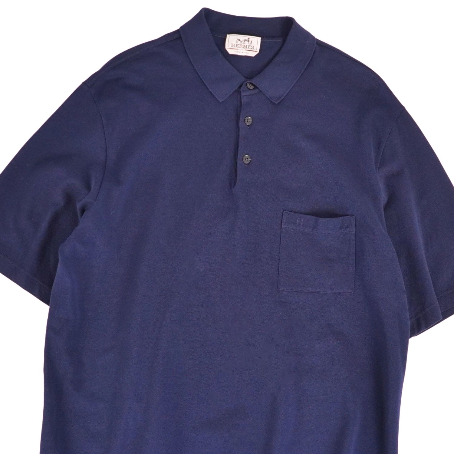 【極美品】エルメス HERMES 23SS シャツ ポロシャツ 半袖 ショートスリーブ Hロゴ刺繍 鹿の子 トップス メンズ XXXL ネイビー【中古】