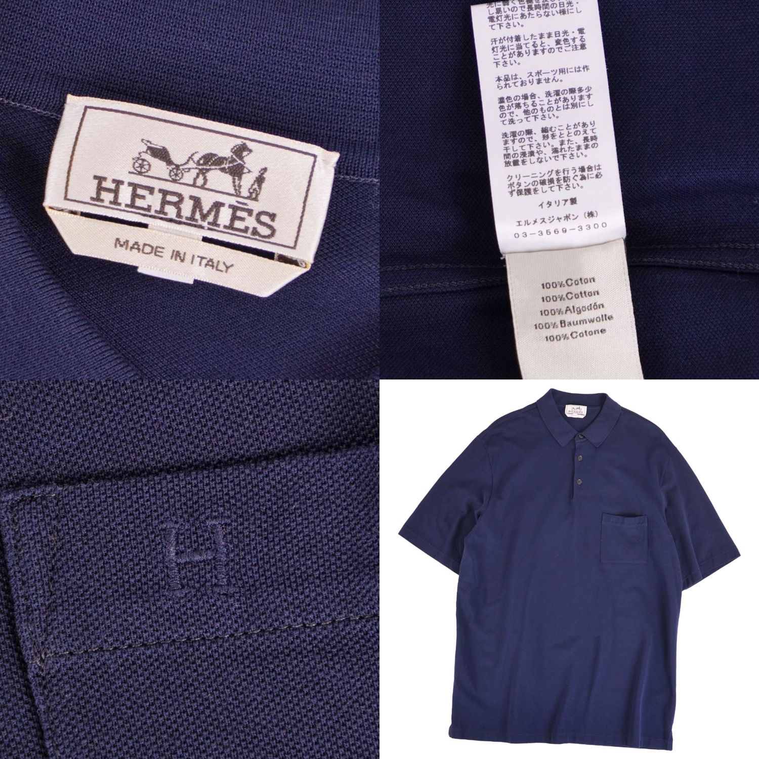 商品名 【極美品】エルメス HERMES 23SS シャツ ポロシャツ 半袖 ショートスリーブ Hロゴ刺繍 鹿の子 トップス メンズ XXXL ネイビー【中古】