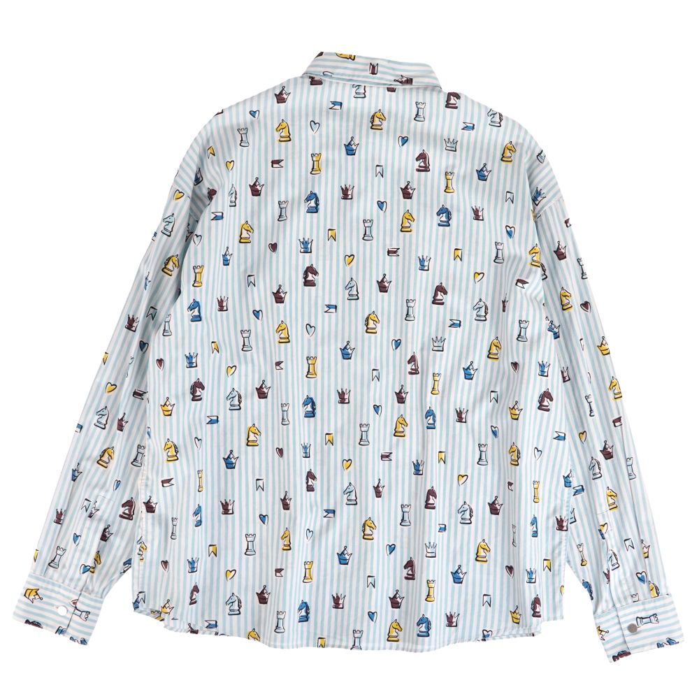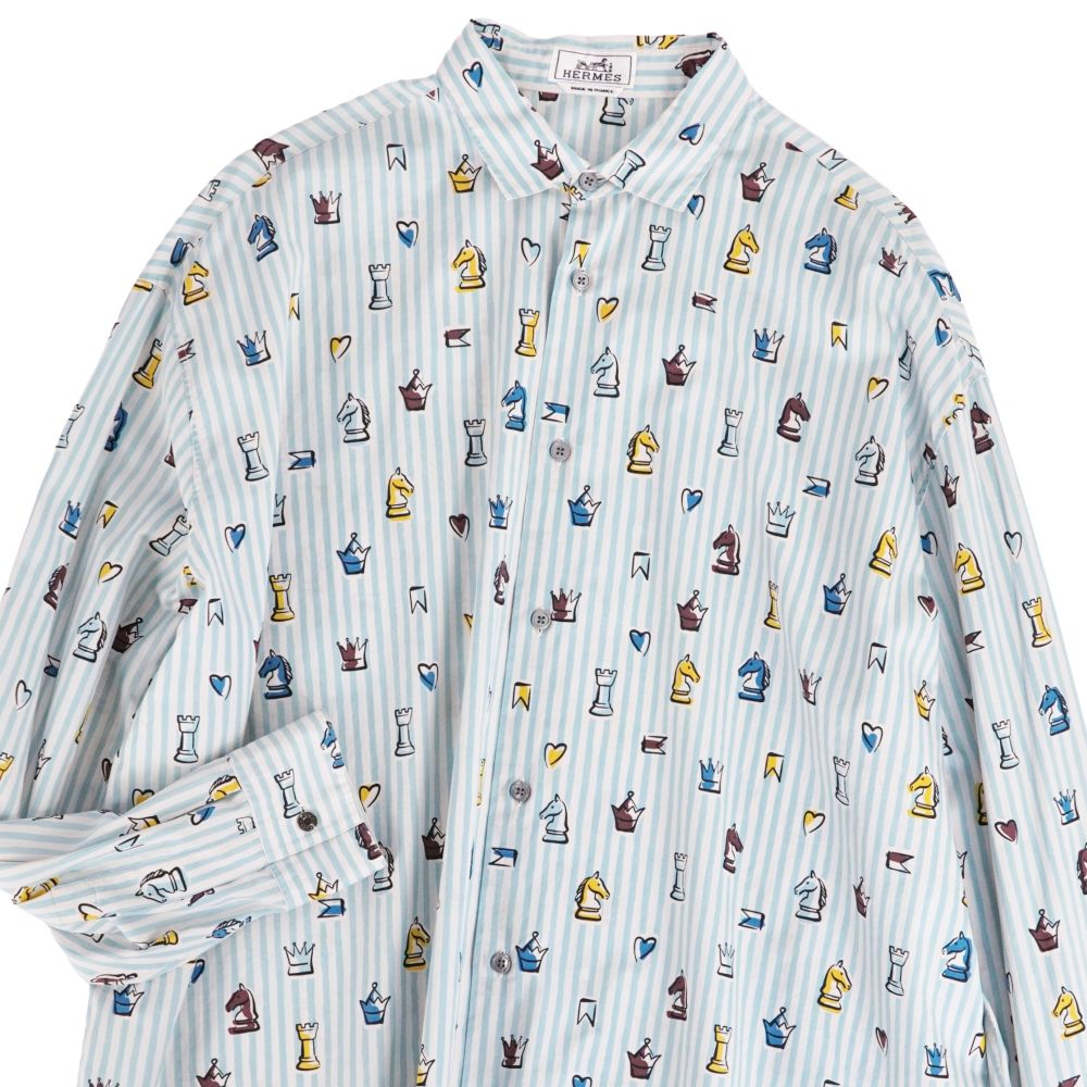 エルメス HERMES シャツ 22SS ロングスリーブ 長袖 総柄 ストライプ コットン トップス メンズ フランス製 ブルー サイズ42(16.5)