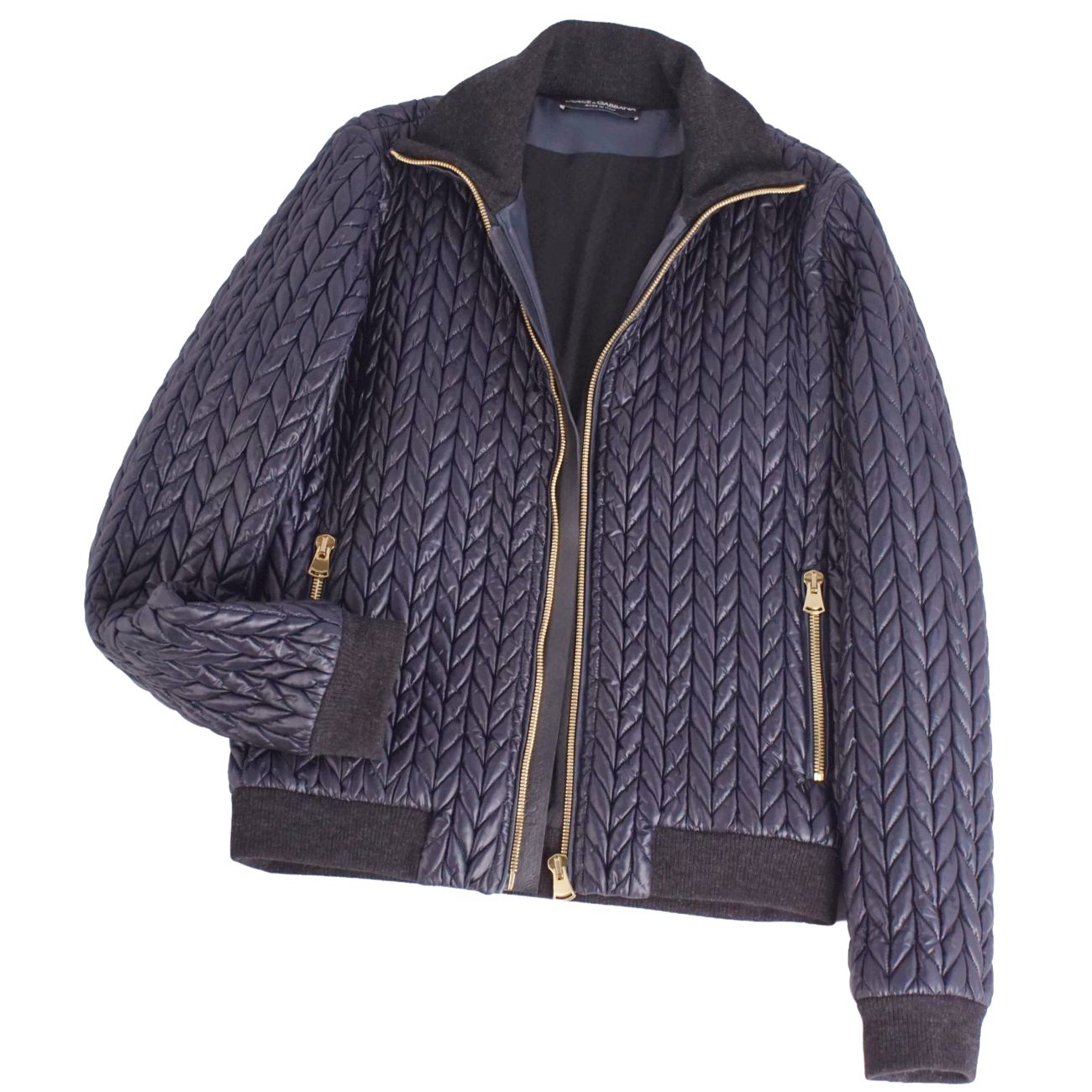 ドルチェ&ガッバーナ DOLCE&GABBANA ジャケット ブルゾン ジップアップ ナイロン 中綿入り キルティング アウター メンズ イタリア製 ネイビー サイズ50(L相当)
