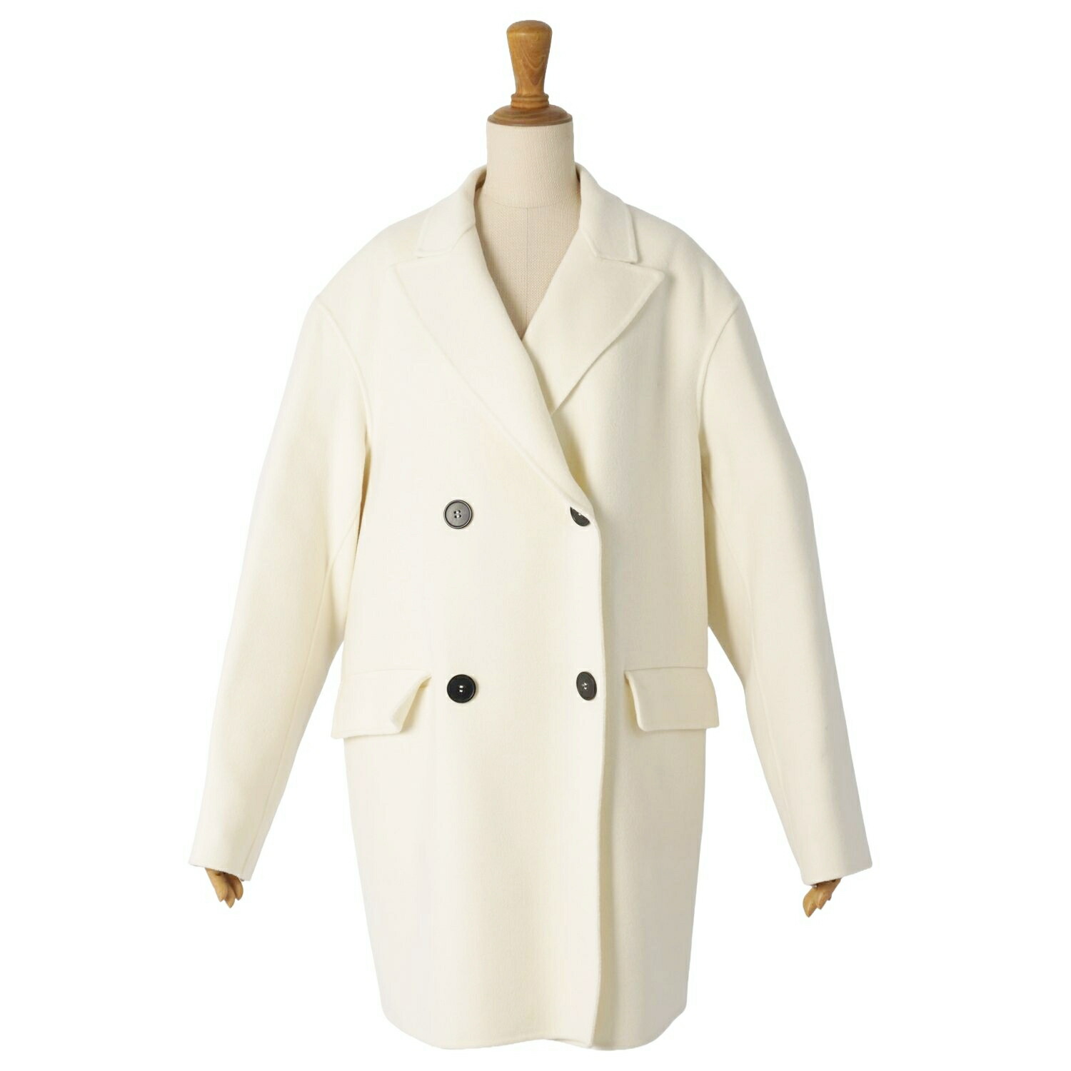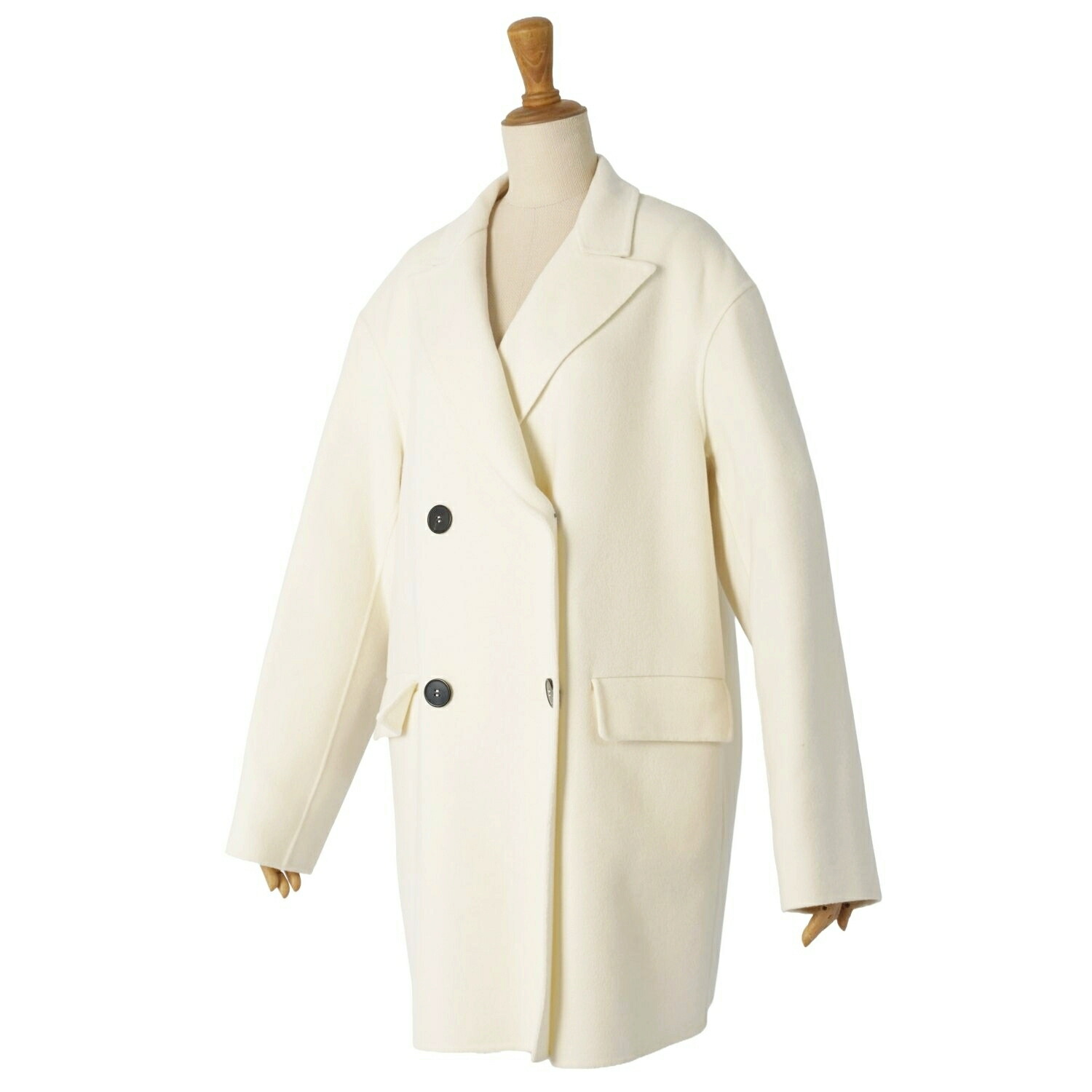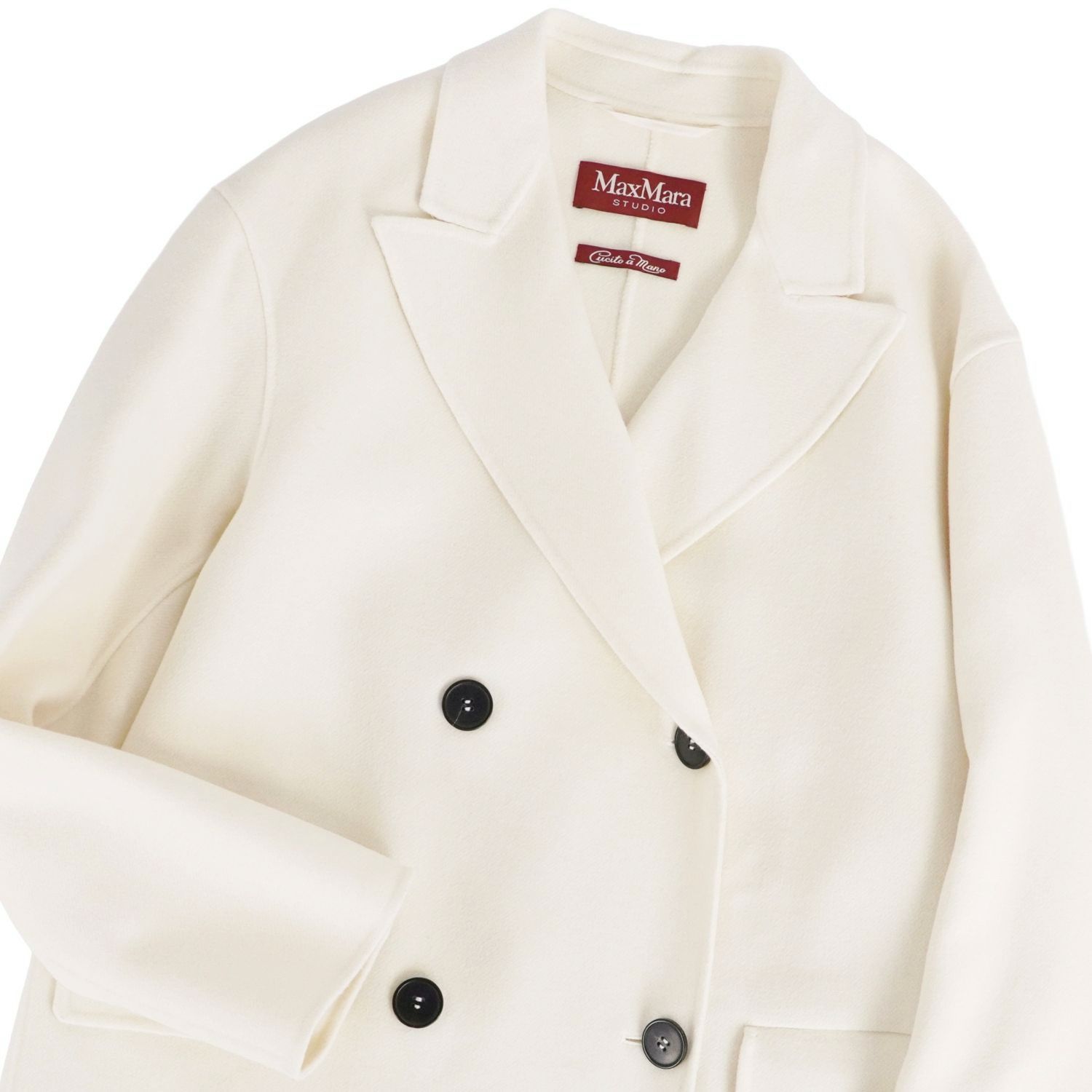 マックスマーラ Max Mara STUDIO cucito a mano クチートアマーノ 2021年 コート ダブルブレスト ウール カシミヤ ダブルフェイス アウター レディース ホワイト サイズJI44 USA10 FB42(XL相当)