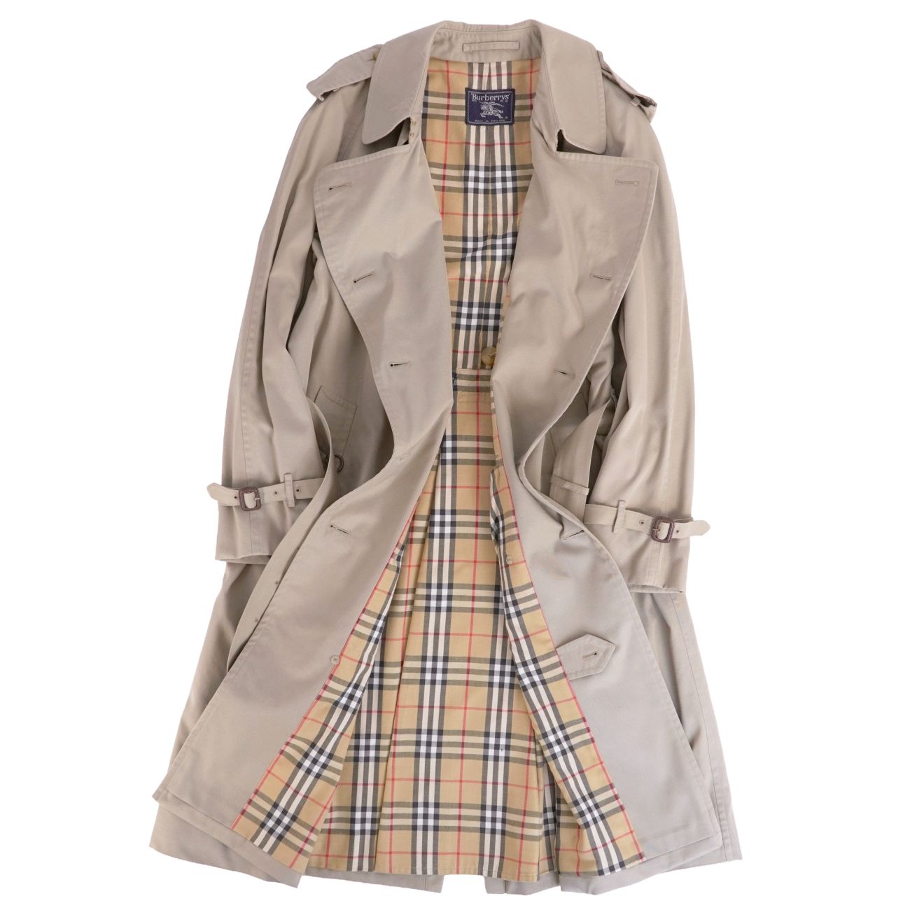 Vintage バーバリー Burberrys コート 英国製 トレンチコート コットン 裏チェック アウター メンズ サンドベージュ サイズ56(XXL相当)