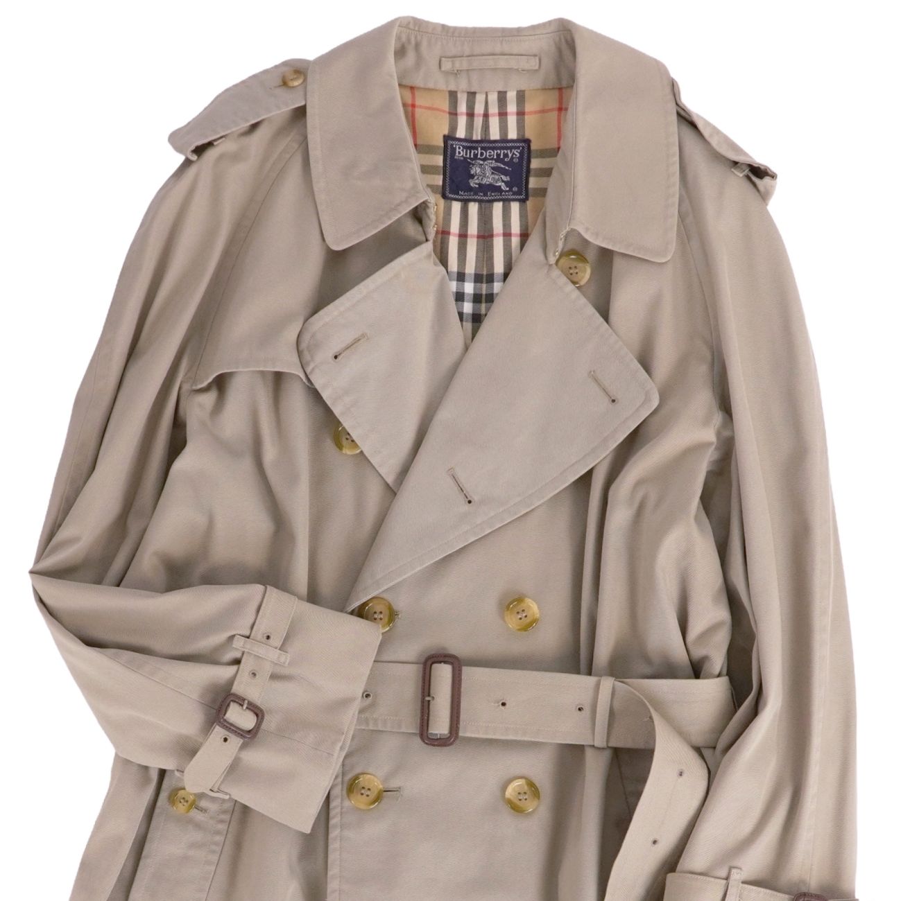 | 商品名 | 【美品】Vintage バーバリー Burberrys コート 英国製 トレンチコート コットン 裏チェック アウター メンズ 56(XXL相当) サンドベージュ【中古】 |