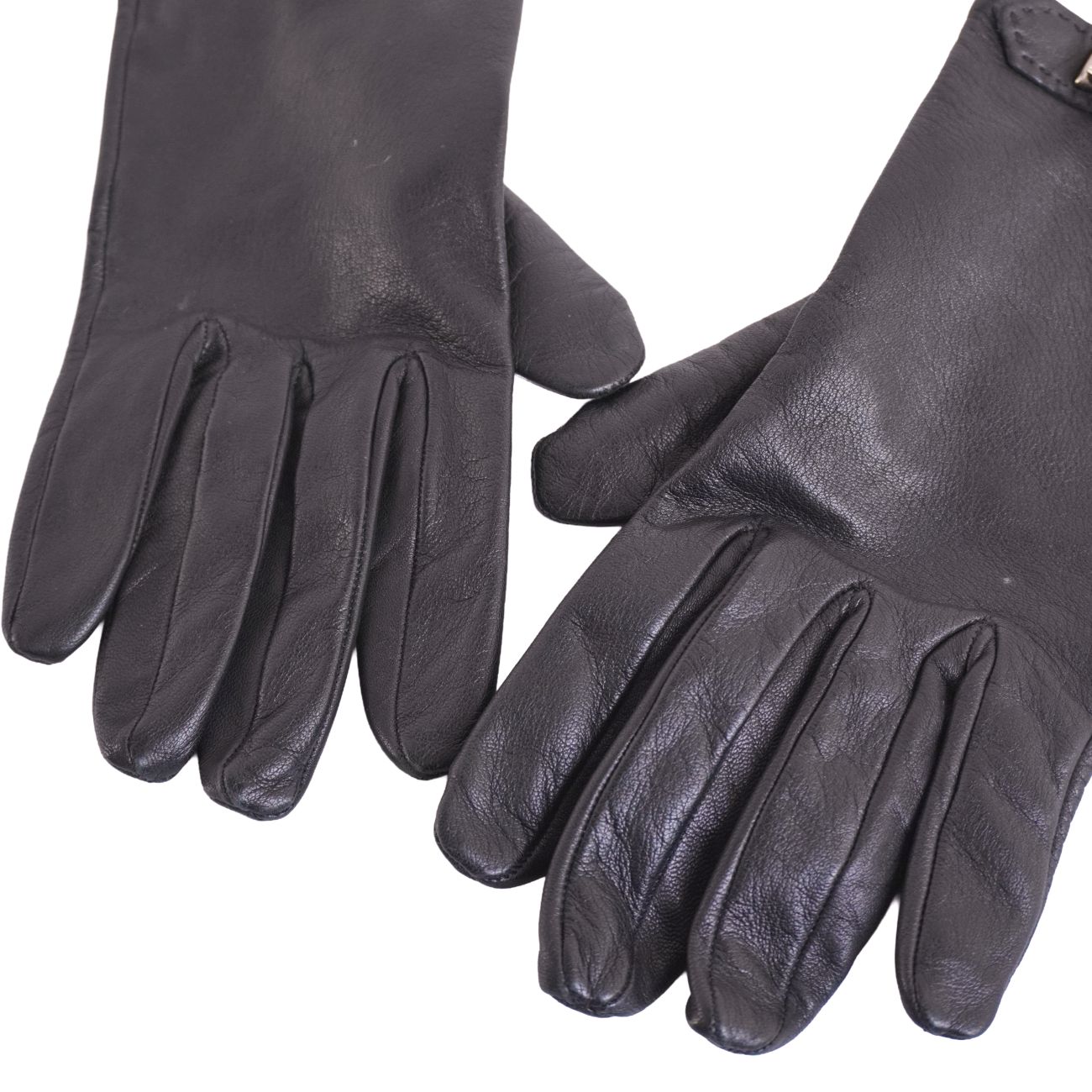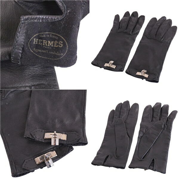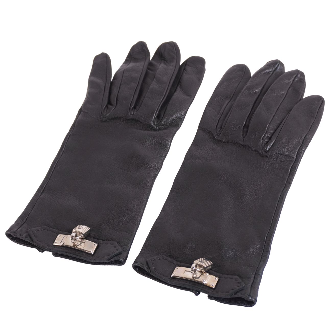エルメス HERMES 手袋 ソヤ SOYA グローブ ケリー金具 ラムレザー レディース フランス製 ブラック サイズ7.5