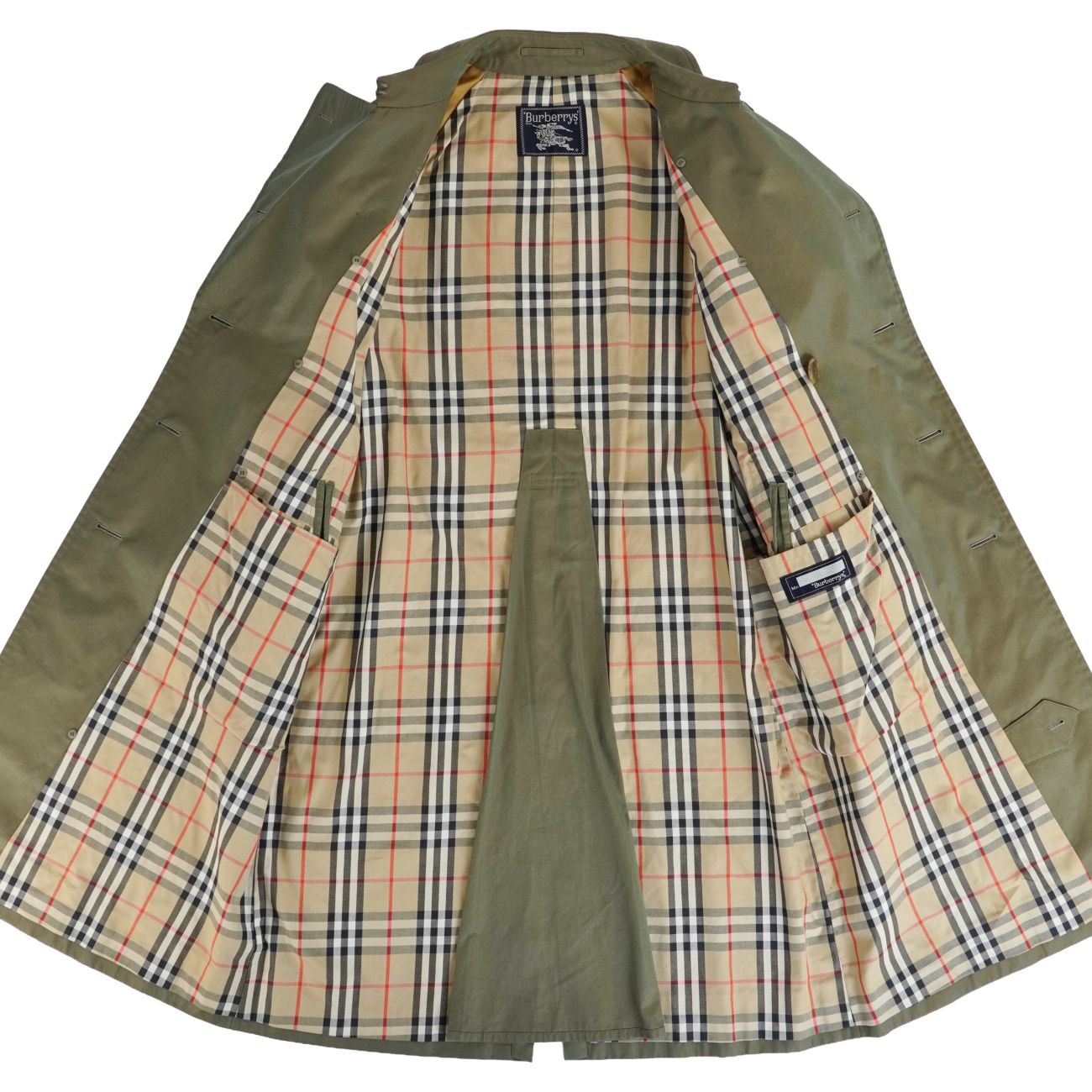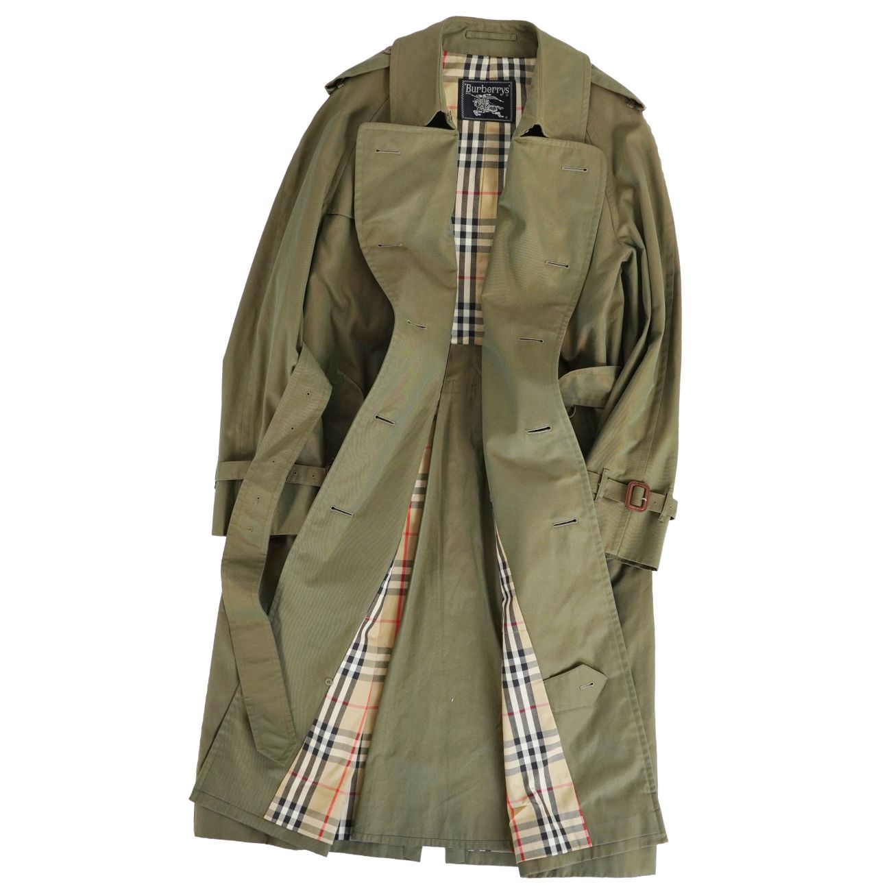 Vintage バーバリー Burberrys コート トレンチコート コットン100% 裏チェック アウター メンズ カーキグリーン サイズ94-175(M相当)