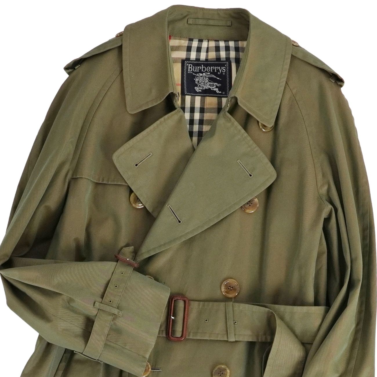 | 商品名 | 【極美品】Vintage バーバリー Burberrys コート トレンチコート コットン100% 裏チェック アウター メンズ 94-175(M相当) カーキグリーン【中古】 |
