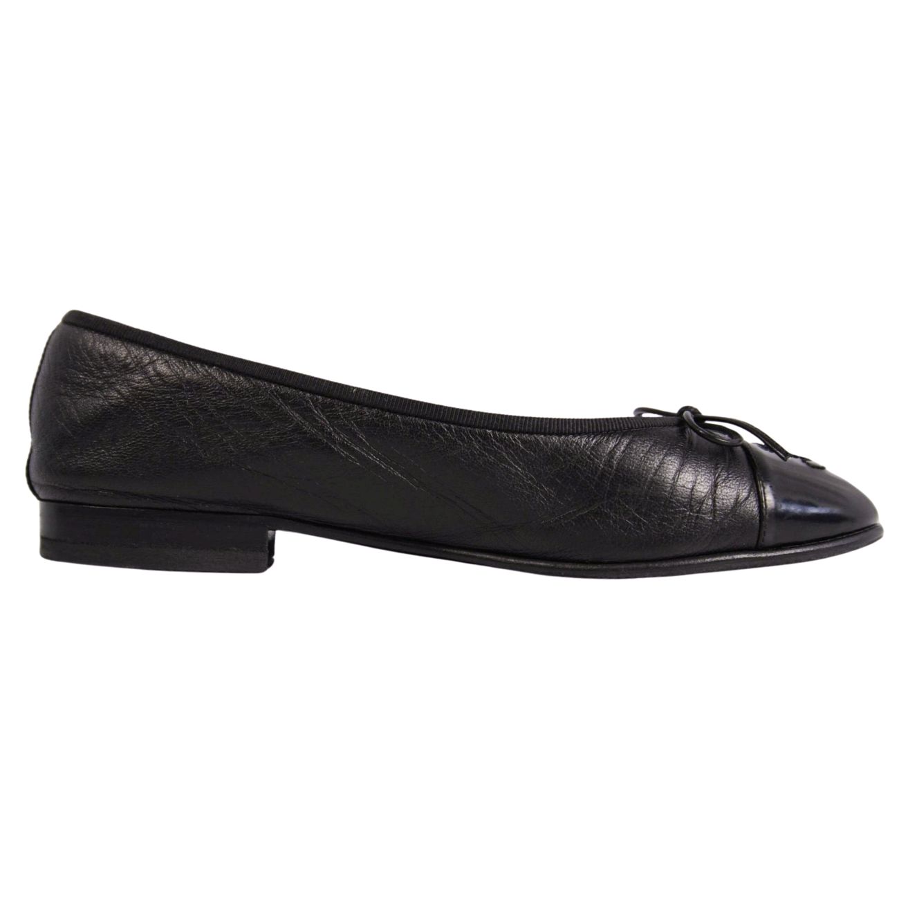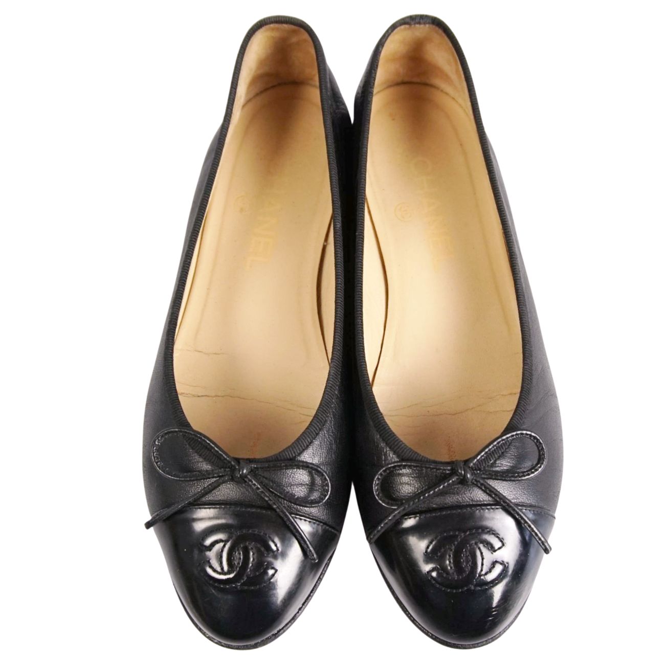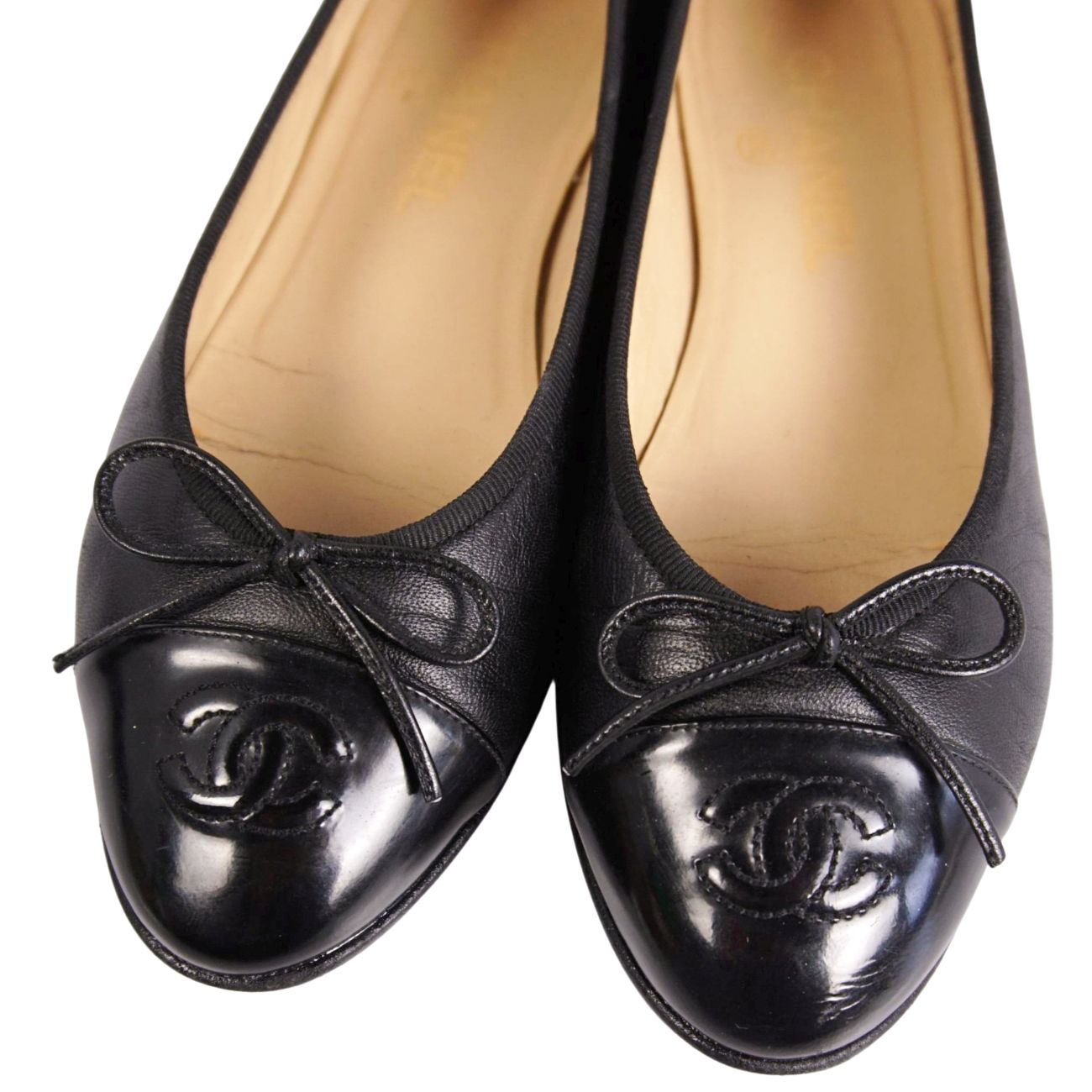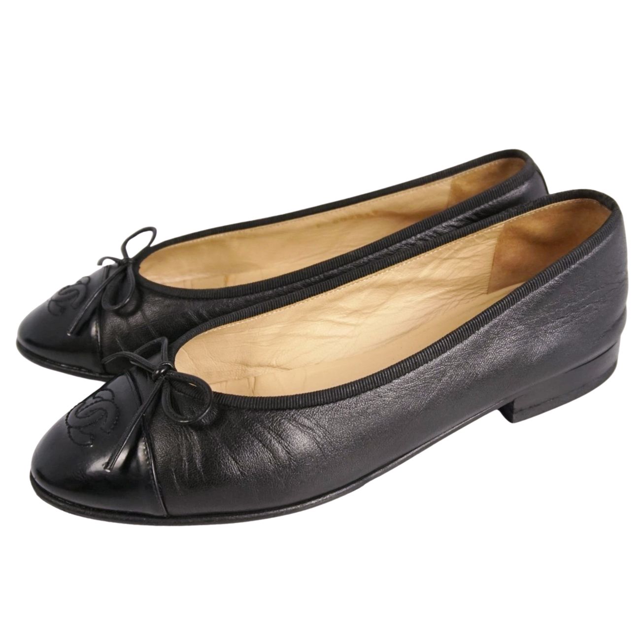 シャネル CHANEL パンプス バレリーナ G02819 リボン ココマーク レザー シューズ 靴 レディース イタリア製 37C ブラック【中古】