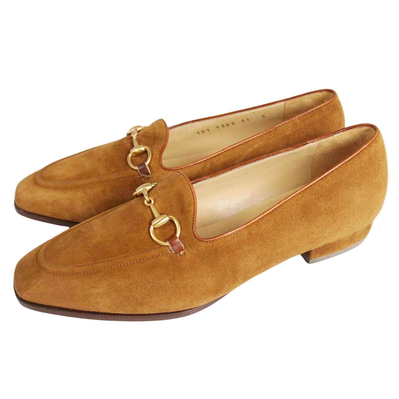 Vintage グッチ GUCCI ローファー モカシン ホースビット スウェードレザー シューズ 靴 レディース イタリア製 ブラウン サイズ37C(24cm相当)