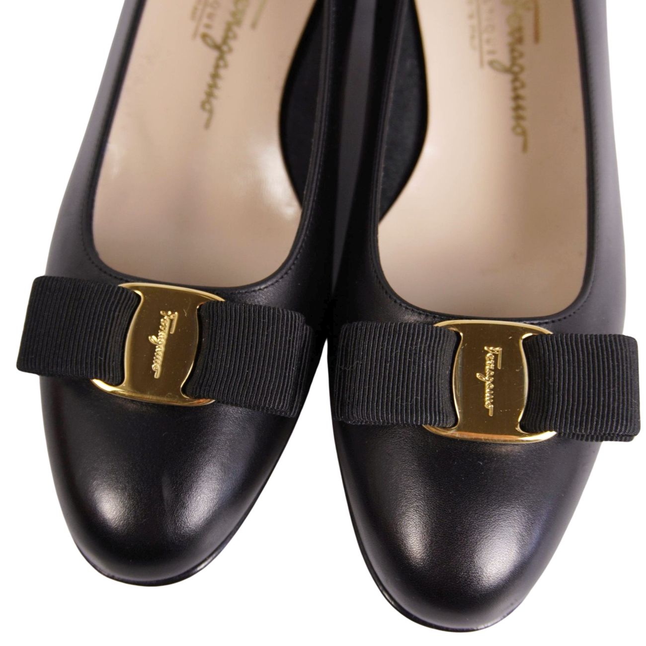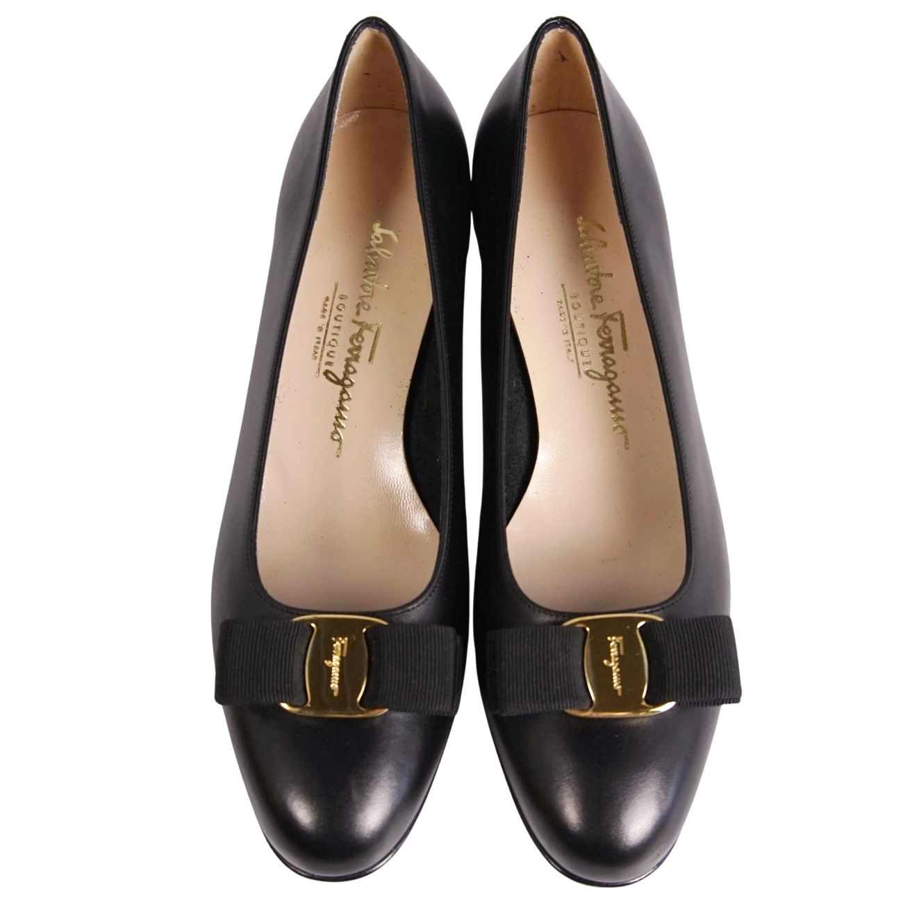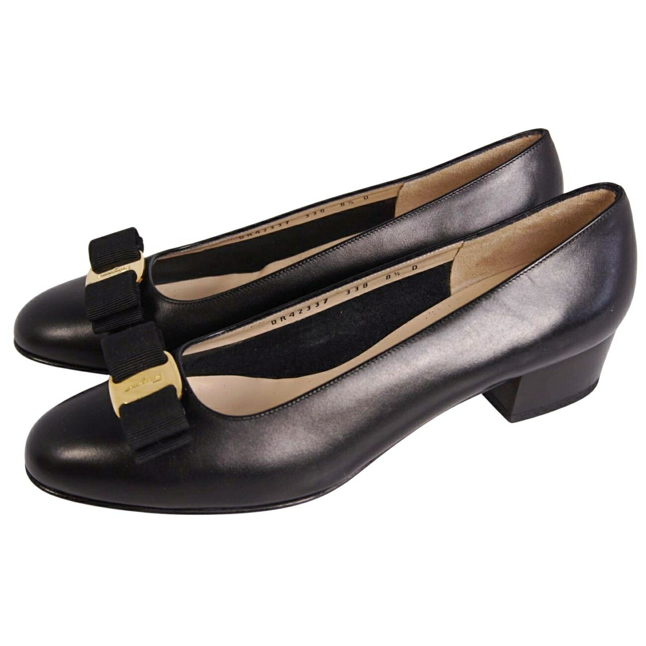 サルヴァトーレ フェラガモ Salvatore Ferragamo パンプス ヴァラ レザー ヒール シューズ 靴 レディース イタリア製 ブラック サイズ8.5D(26cm相当)