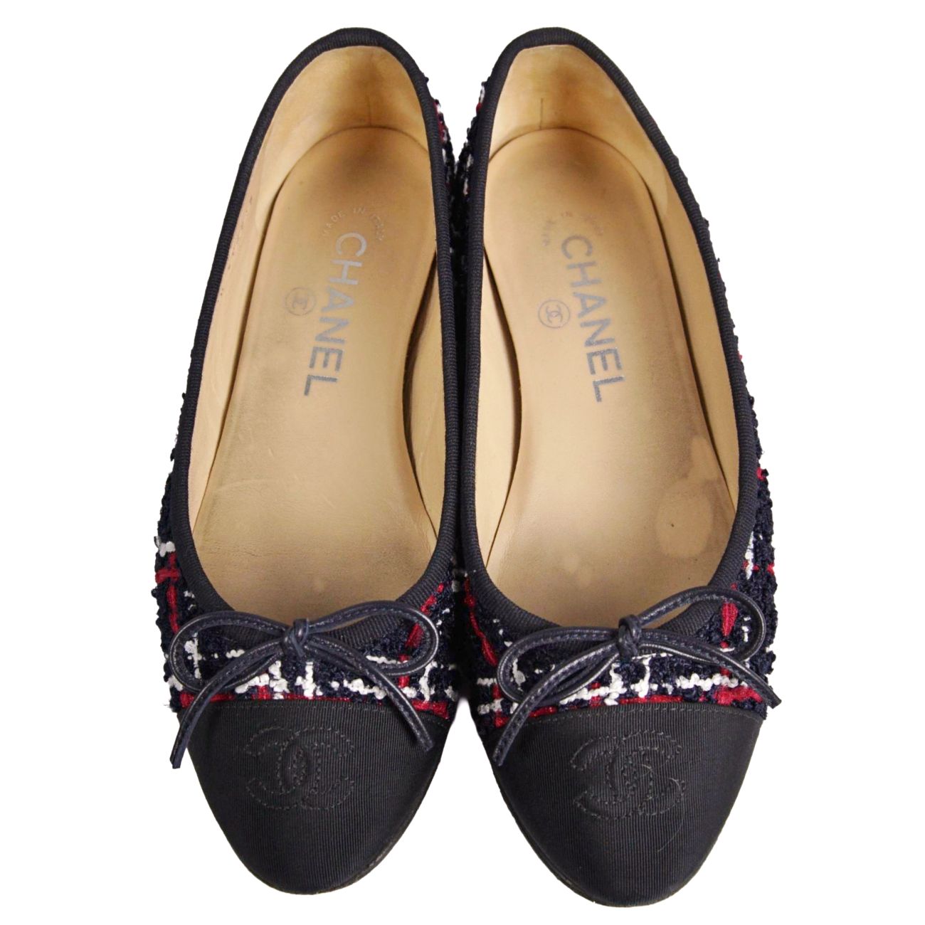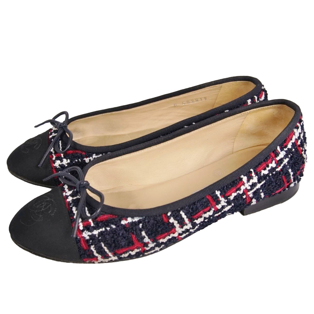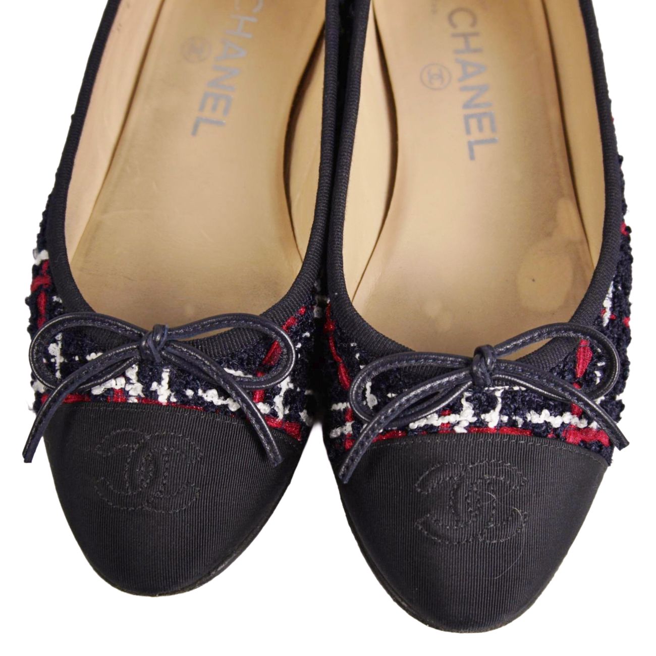 シャネル CHANEL パンプス バレリーナ G02819 リボン ココマーク ツイード シューズ 靴 レディース イタリア製 ネイビー サイズ36C
