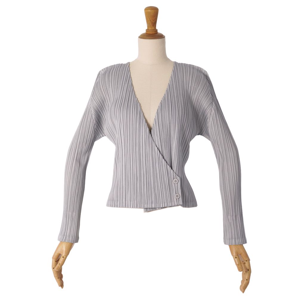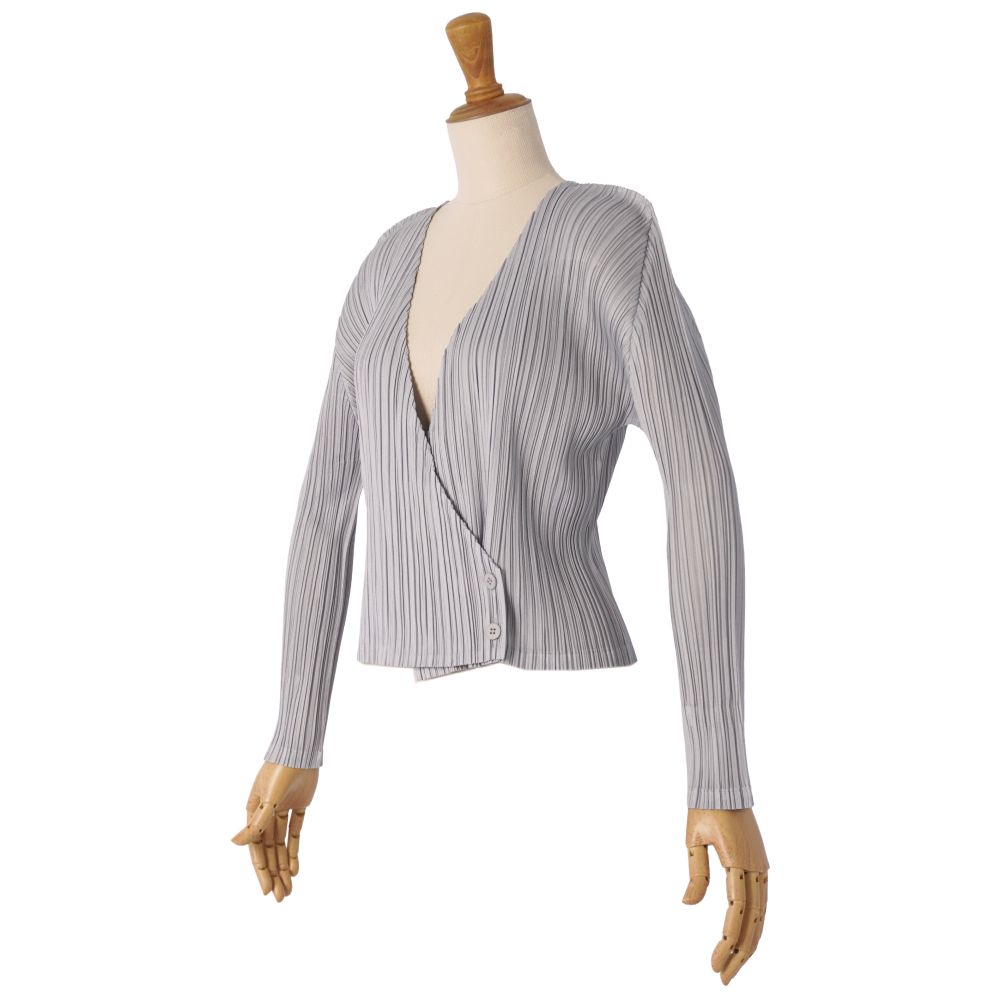 プリーツプリーズ イッセイミヤケ PLEATS PLEASE カーディガン ロングスリーブ 長袖 トップス レディース グレー サイズ3(L相当)
