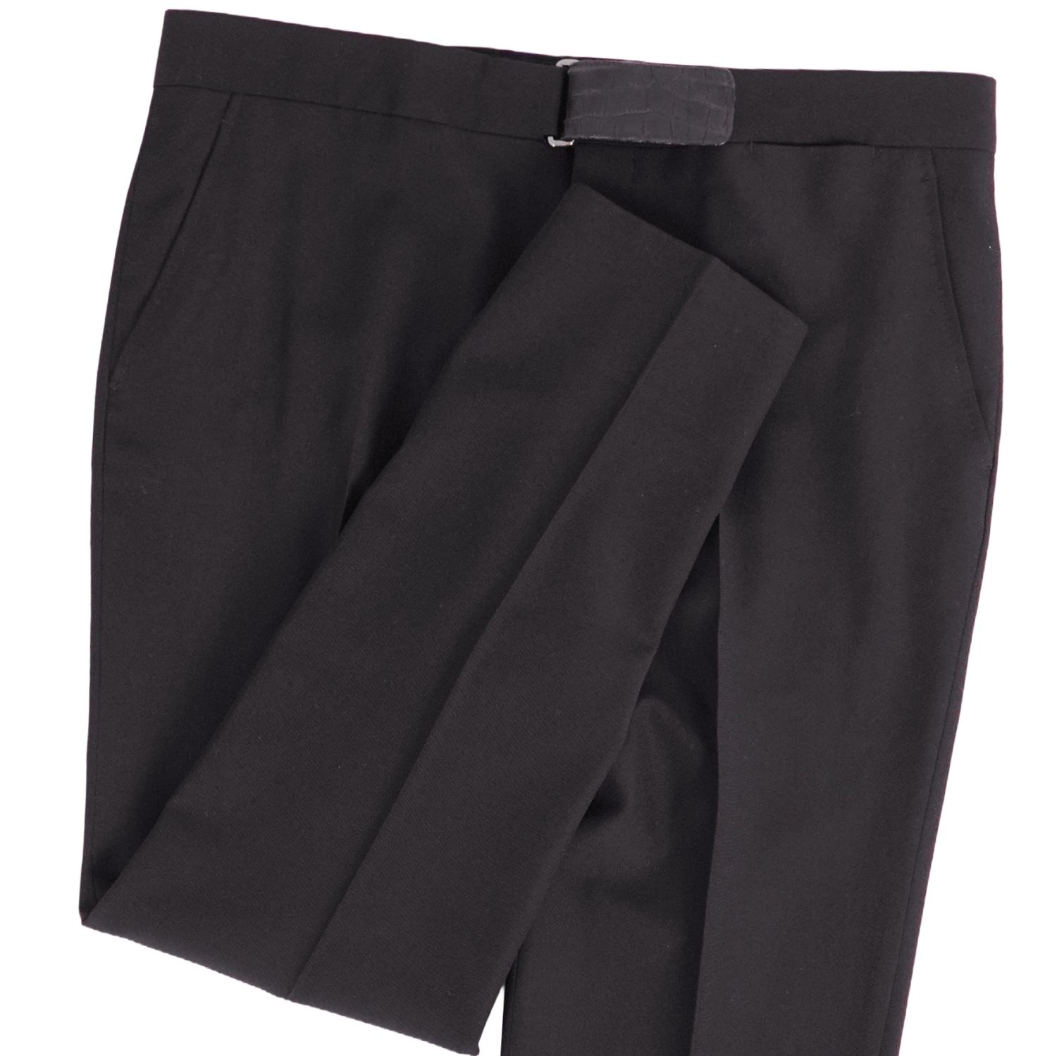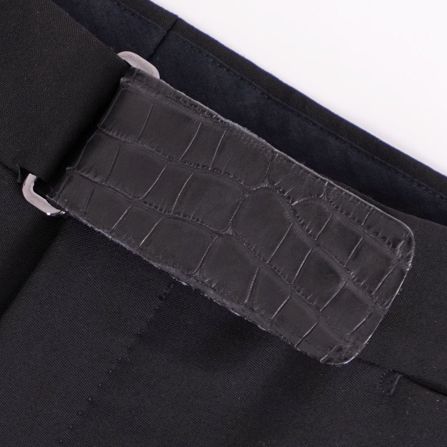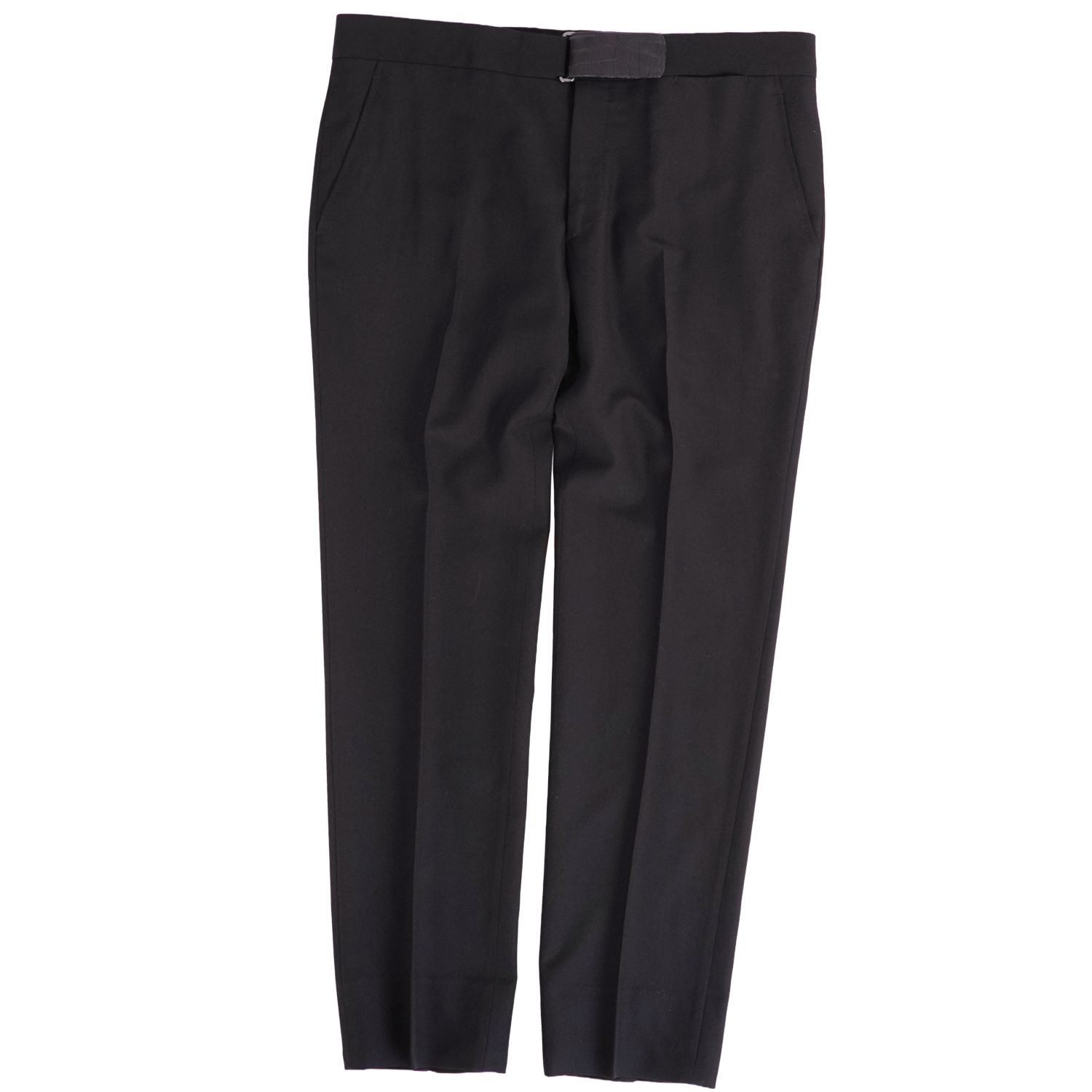 エルメス HERMES パンツ ロングパンツ スラックスパンツ ウール クロコダイル ワニ革 無地 ボトムス メンズ ブラック サイズ44(L相当)