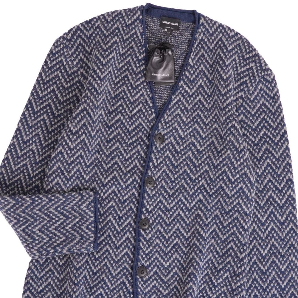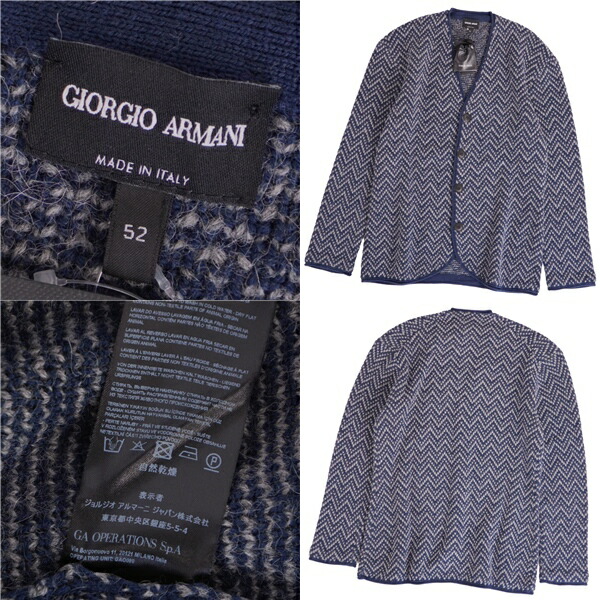 ジョルジオアルマーニ GIORGIO ARMANI カーディガン ジャケット ニット ロングスリーブ 長袖 ウール アルパカ トップス メンズ イタリア製 ネイビー サイズ52(L相当)
