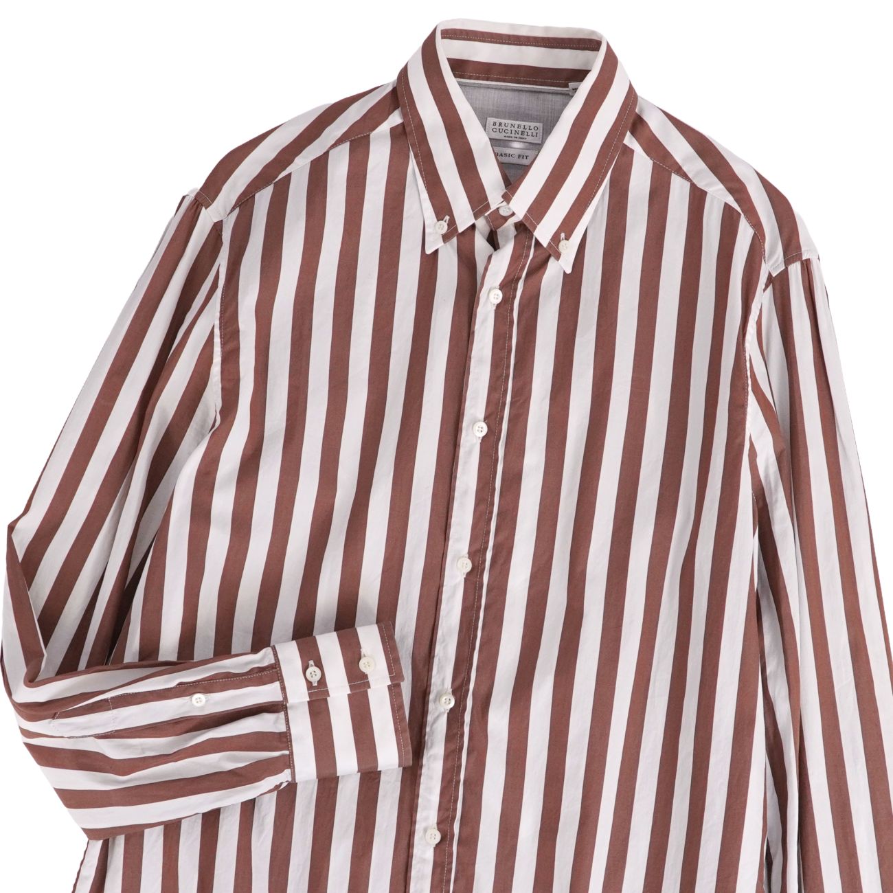 ブルネロクチネリ BRUNELLO CUCINELLI シャツ ロングスリーブ 長袖 ストライプ コットン トップス メンズ イタリア製 ブラウン サイズM