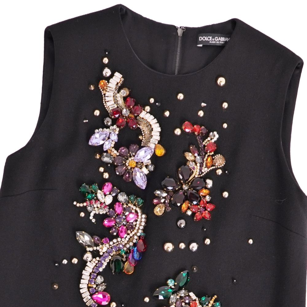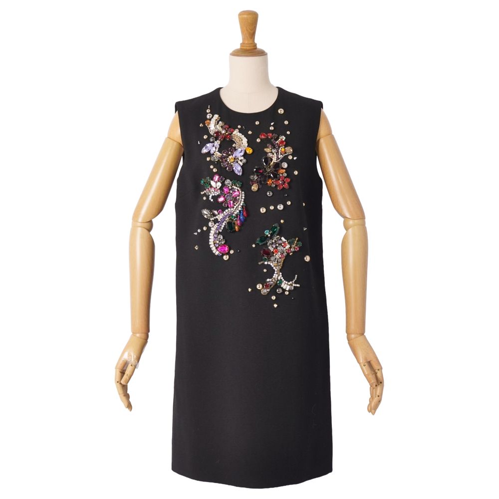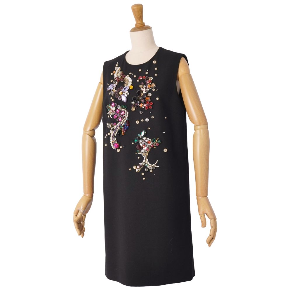 ドルチェ&ガッバーナ DOLCE&GABBANA ワンピース ノースリーブ ビジュー装飾 ウール トップス レディース イタリア製 ブラック サイズ40(M相当)