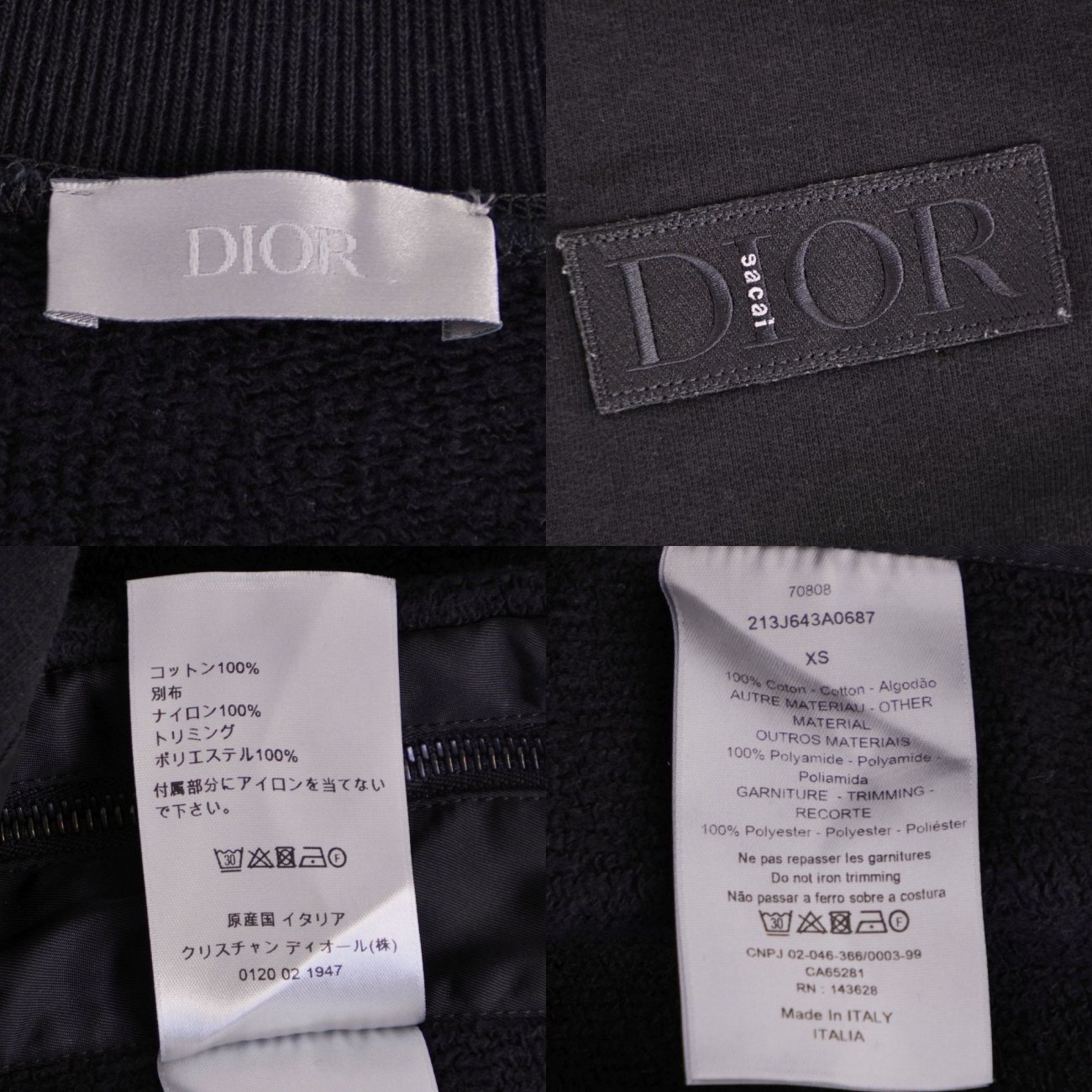 ディオールオム サカイ DIOR HOMME sacai スウェット 2022 トレーナー ロングスリーブ 長袖 コットン トップス メンズ イタリア製 ブラック サイズXS