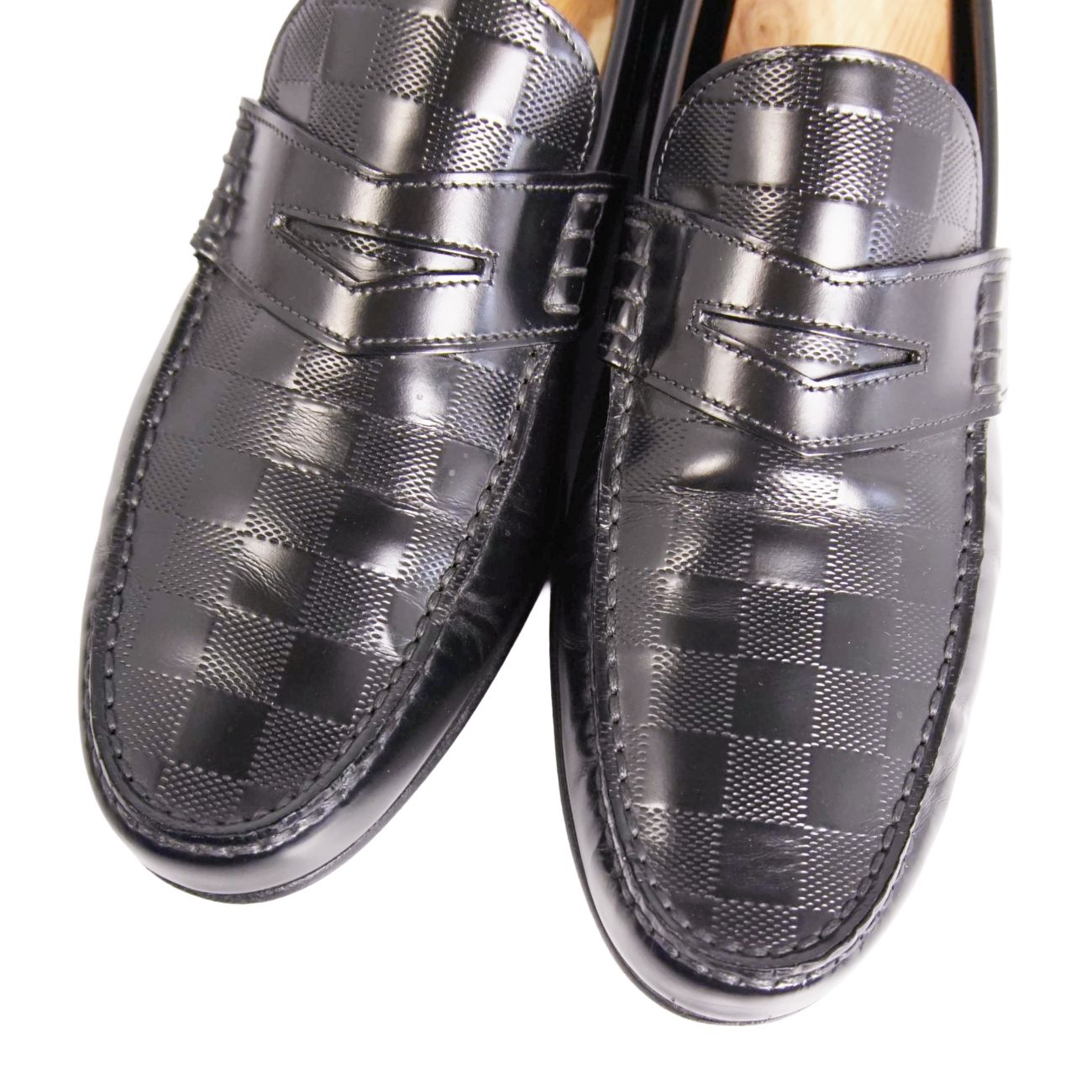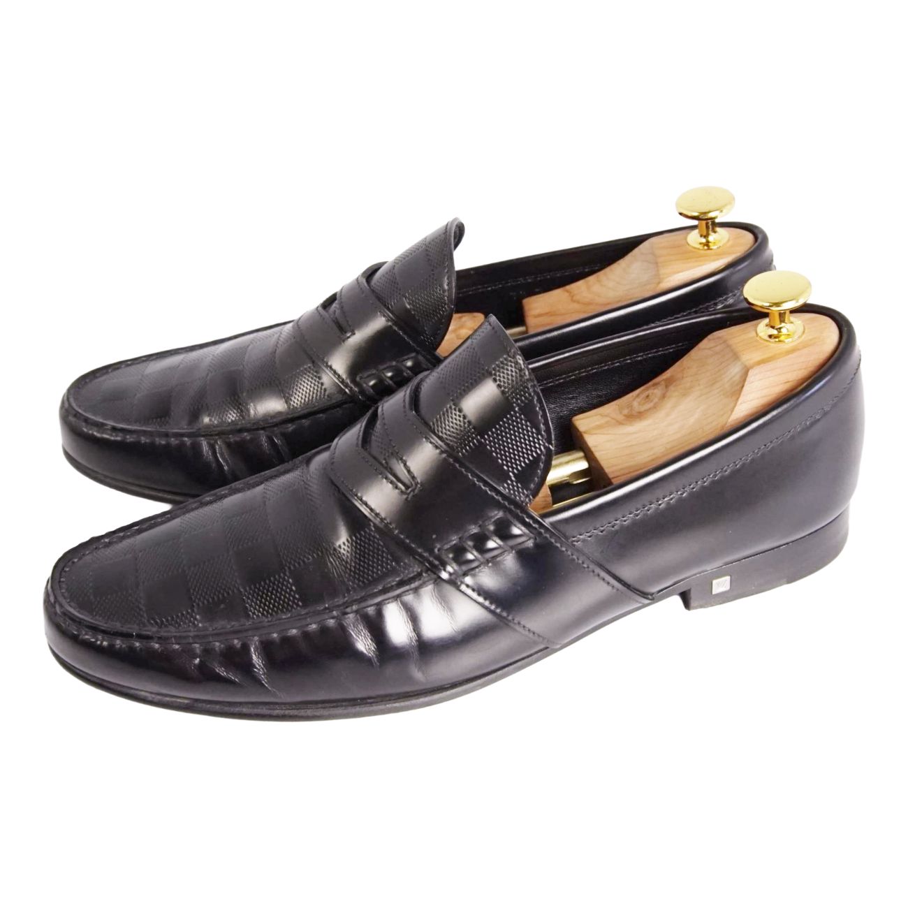 ルイヴィトン LOUIS VUITTON ローファー コインローファー ダミエ ビジネスシューズ レザー 革靴 メンズ イタリア製 ブラック サイズ7.5(26cm相当)