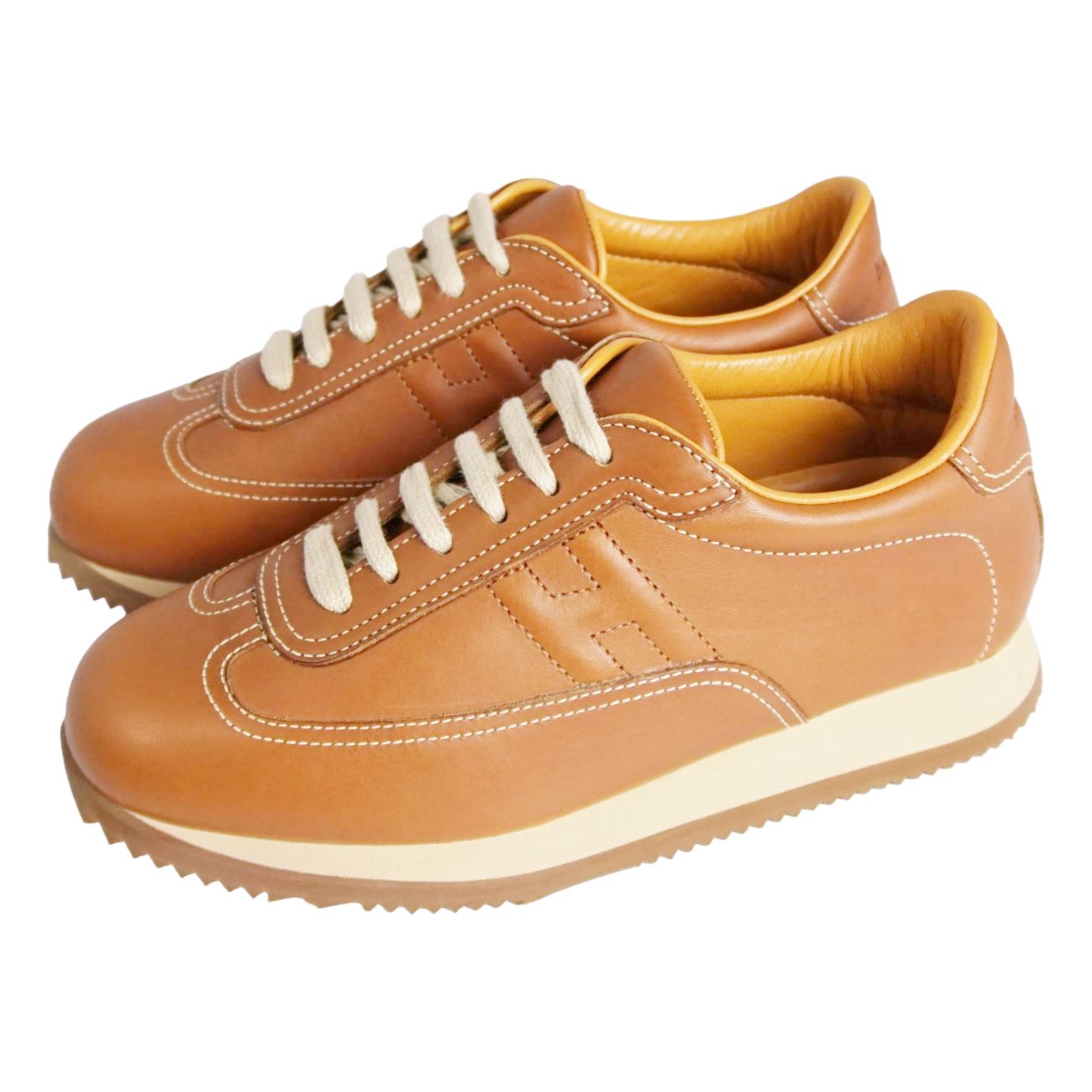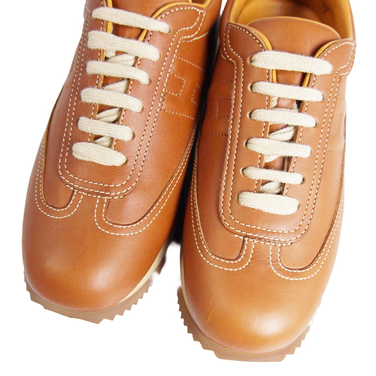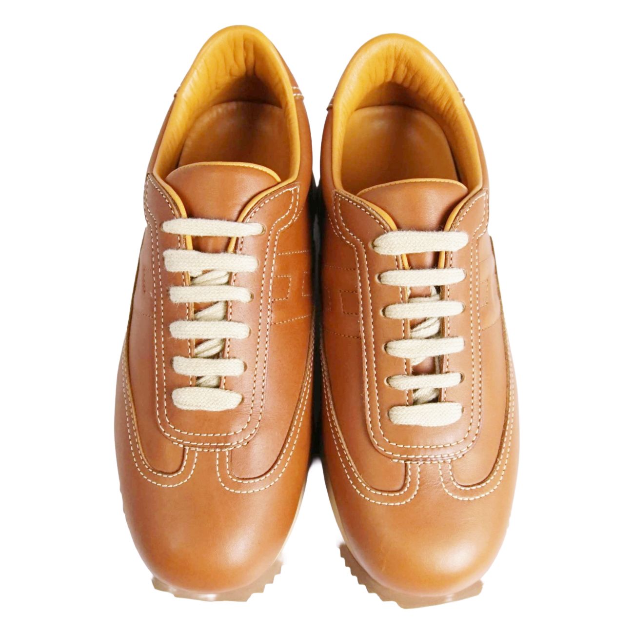 エルメス HERMES スニーカー ローカット Hロゴ クイック レザー シューズ レディース ブラウン サイズ36.5(23.5cm相当)