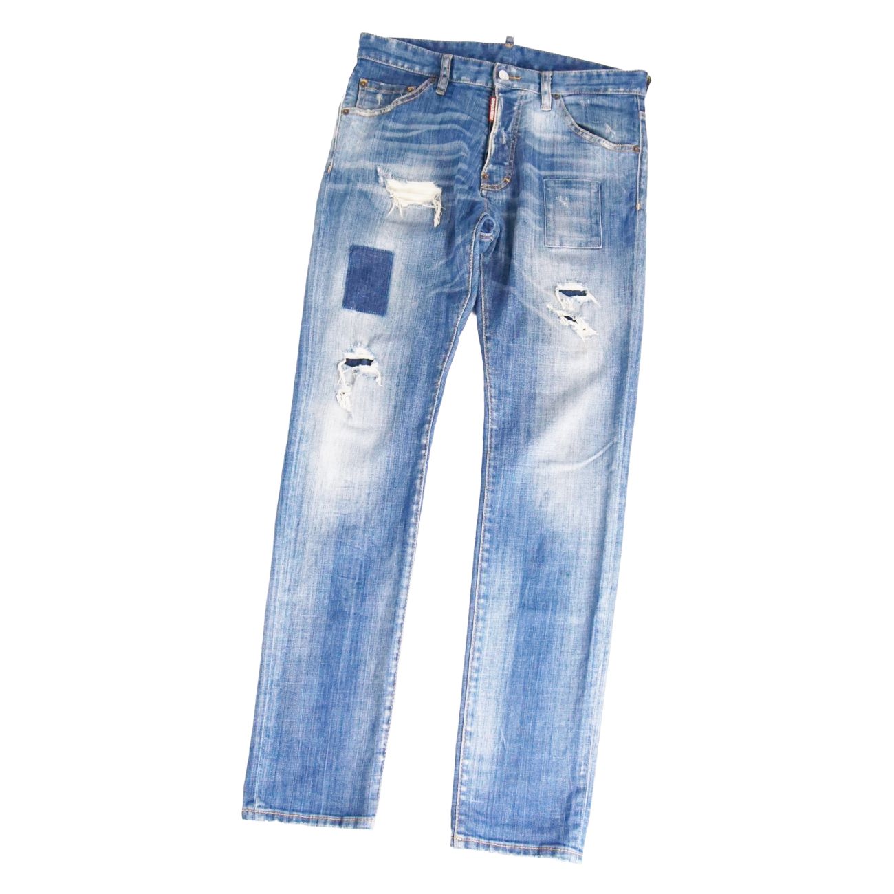 ディースクエアード DSQUARED2 パンツ デニムパンツ ジーンズ ダメージ加工 ボトムス メンズ イタリア製 インディゴブルー サイズ46(S相当)
