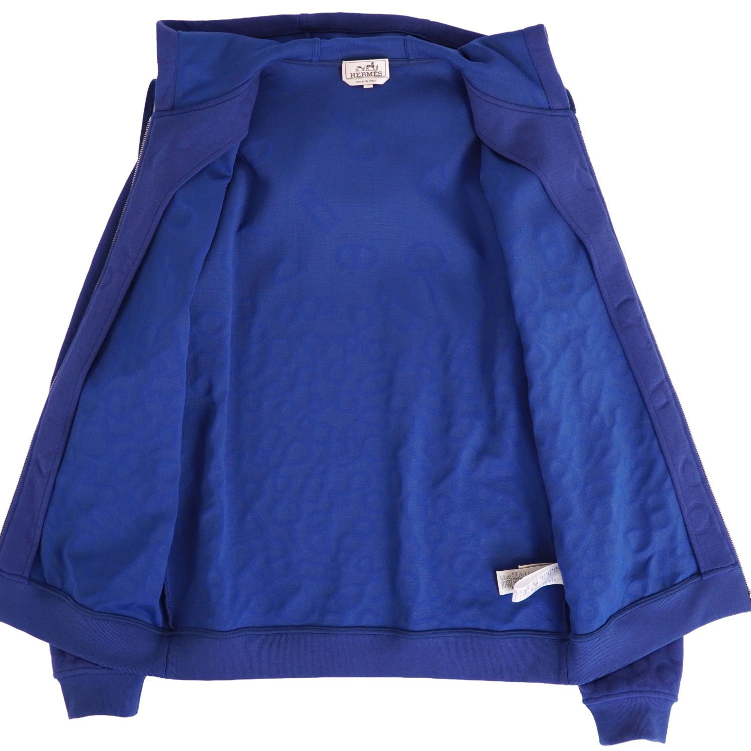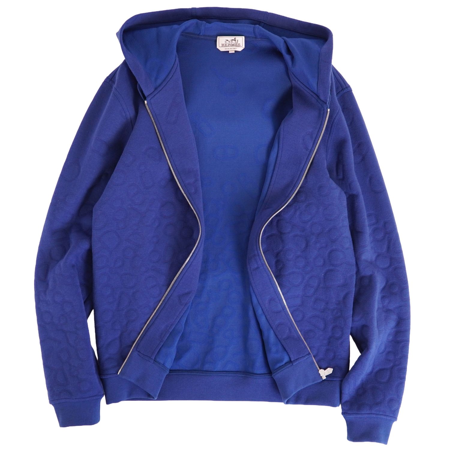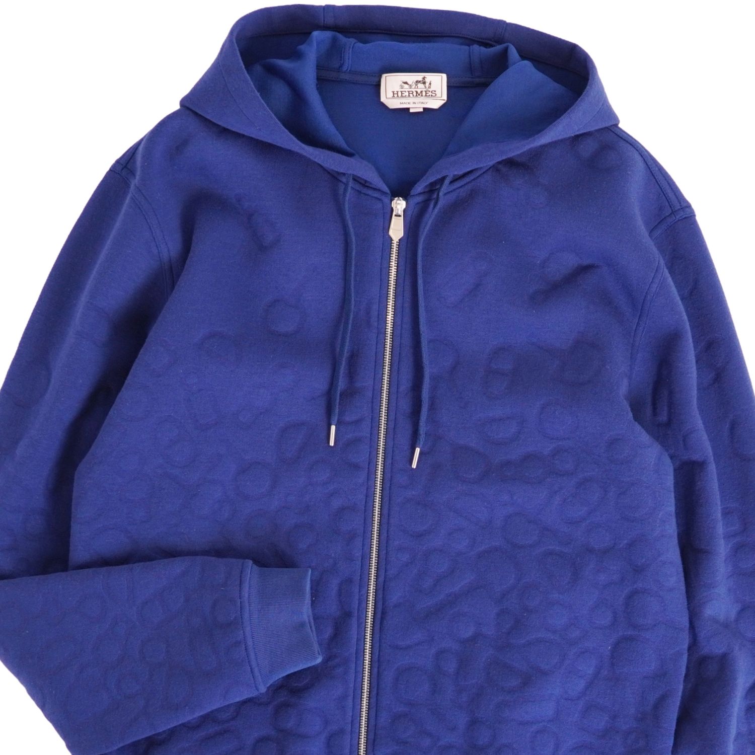 エルメス HERMES 23SS Maillons en Boucle Aero スウェット パーカー フーディ ジップアップ エンボス シェーヌダンクル マイヨン トップス メンズ ブルー サイズL