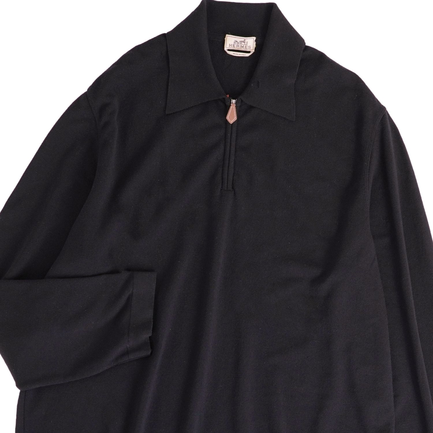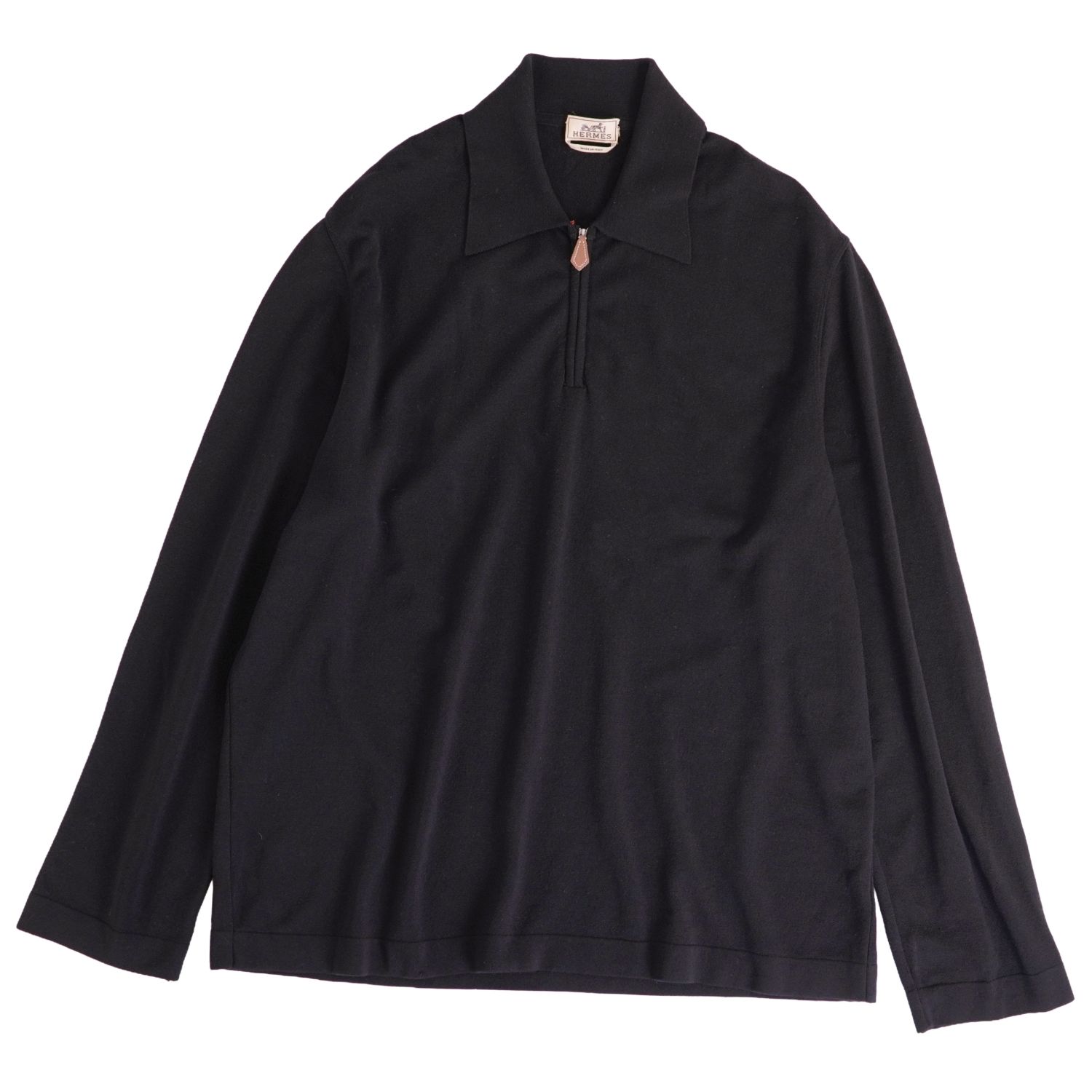 エルメス HERMES ニット セーター ハーフジップ プルオーバー ロングスリーブ 長袖 ウール 無地 トップス メンズ ブラック サイズXL