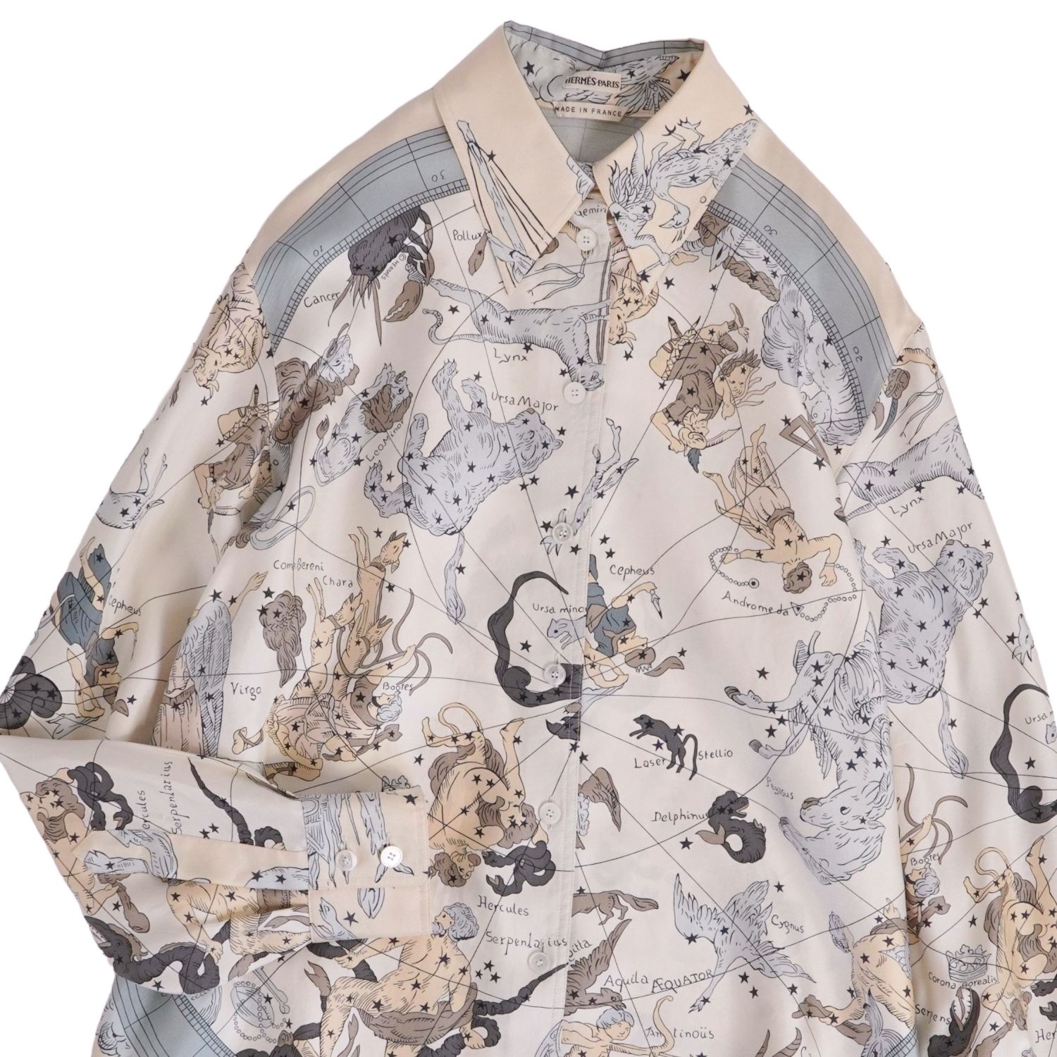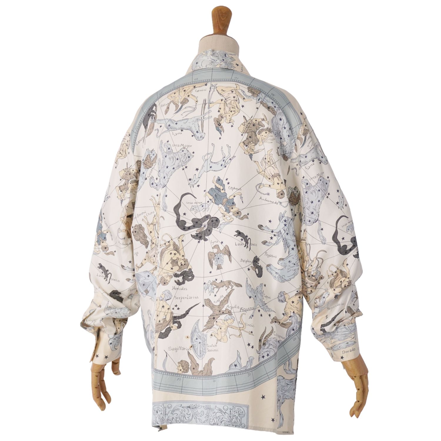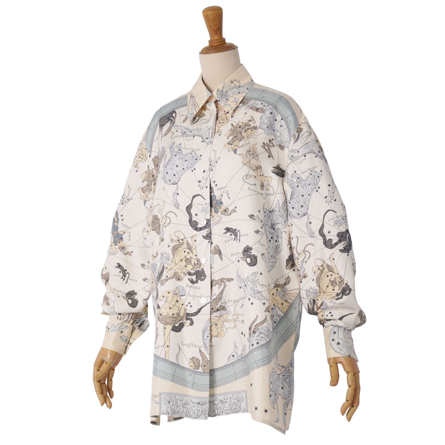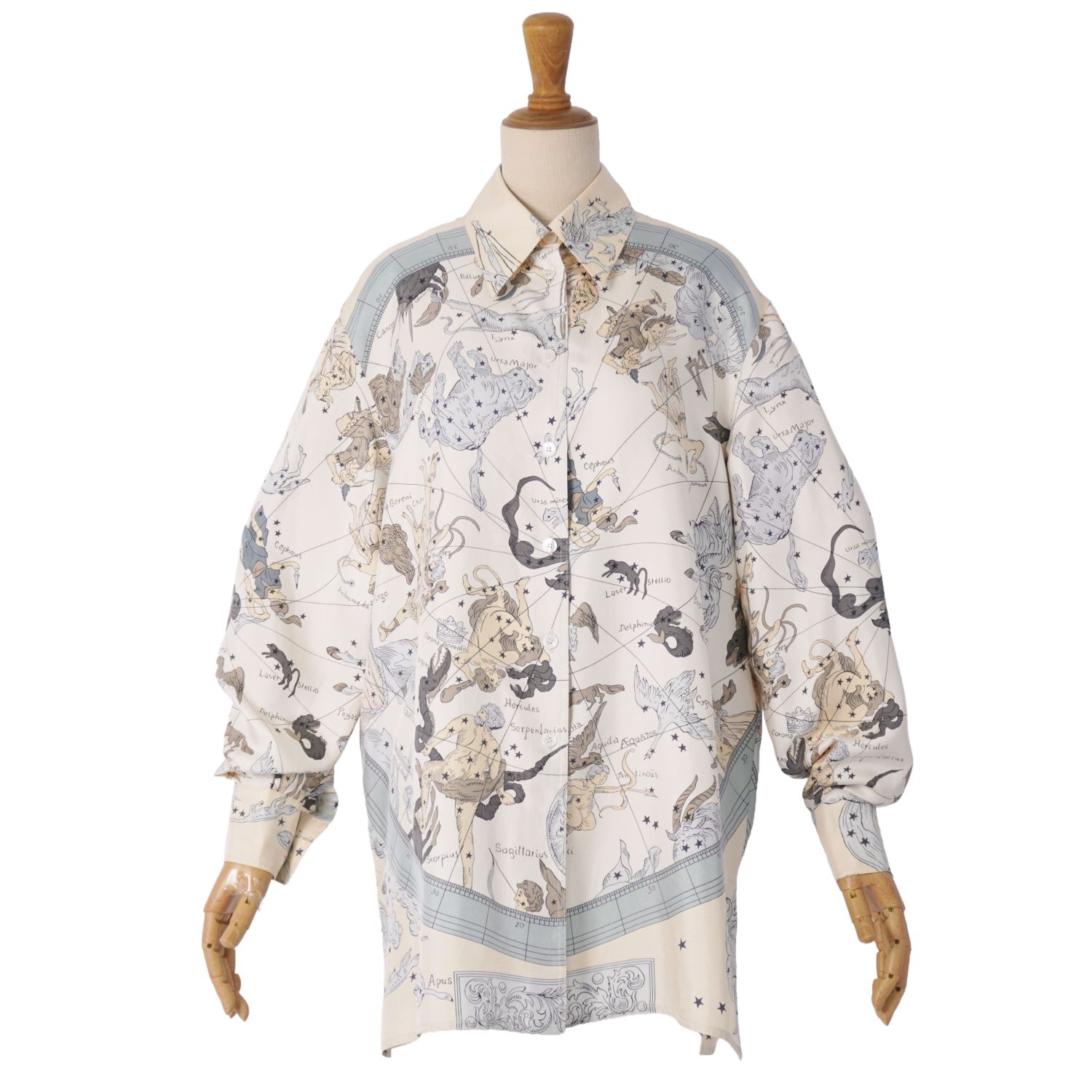 エルメス HERMES マルジェラ期 シャツ ブラウス ロングスリーブ 長袖 HEMISPHARIUM COELI BOREALE 星座柄 シルクツイル 総柄 トップス レディース マルチカラー サイズ36(S相当)