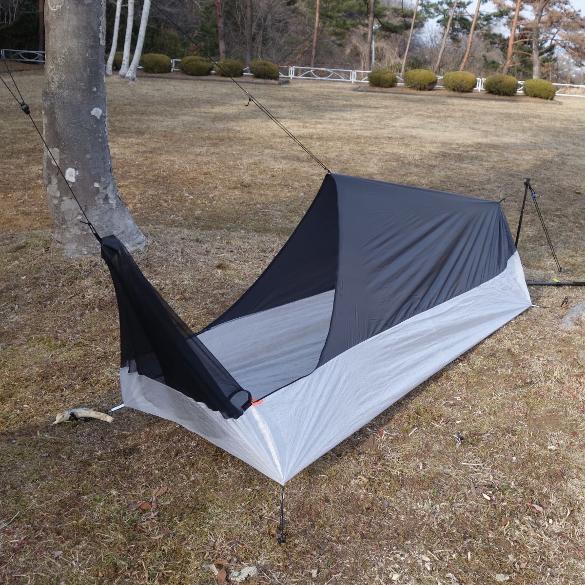 ・広い蚊帳付きで重さわずか157gと超軽量かつ、上から吊ることで広い居住空間をつくり出せるビビィ