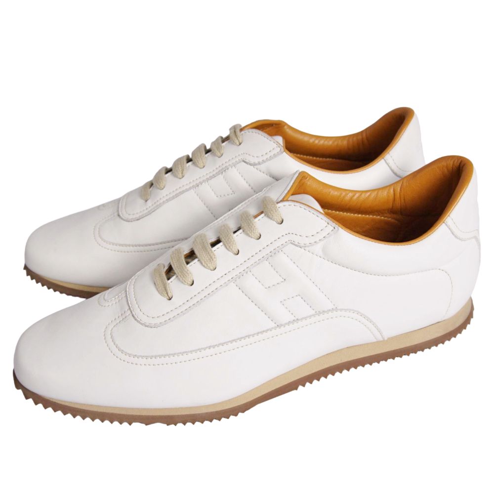 エルメス HERMES スニーカー クイック ローカット Hロゴ レザー シューズ レディース イタリア製 ホワイト サイズ41.5(26.5cm相当)