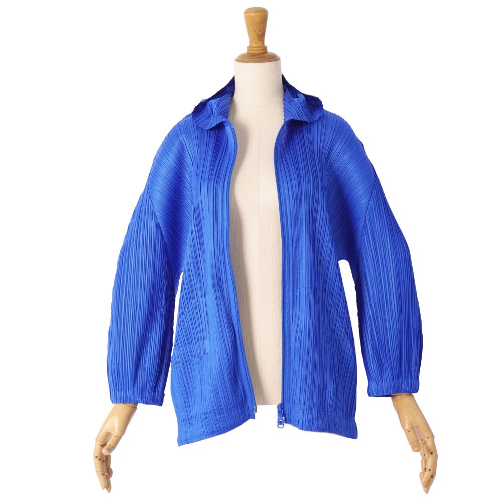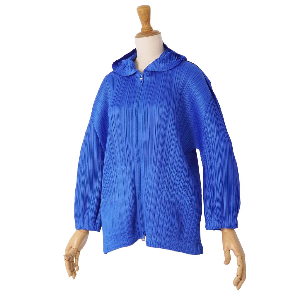プリーツプリーズ イッセイミヤケ PLEATS PLEASE パーカー フーディー ジップアップ プリーツ トップス レディース ブルー サイズ4(L相当)