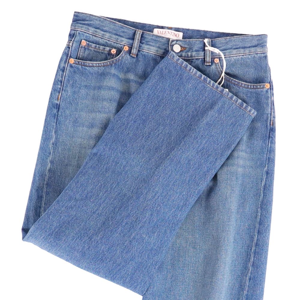 【新古品】ヴァレンティノ VALENTINO パンツ デニムパンツ ワイドパンツ コットン ボトムス レディース イタリア製 27 インディゴブルー【中古】