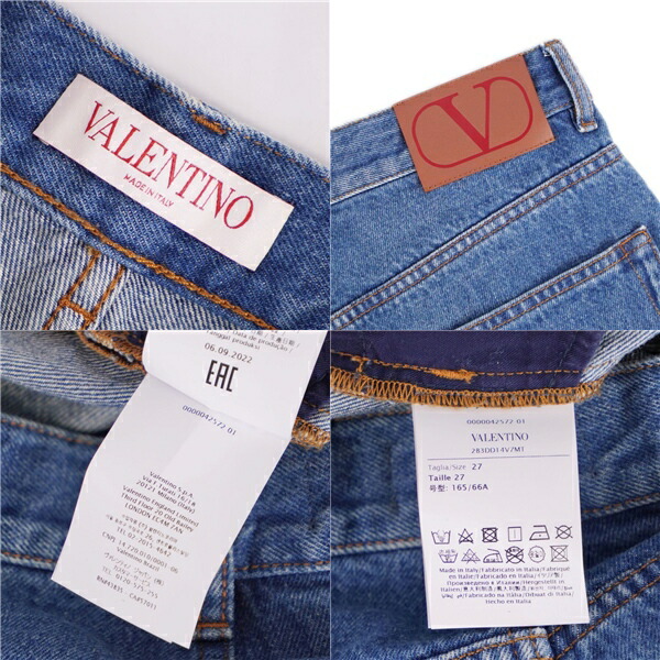 ヴァレンティノ VALENTINO パンツ デニムパンツ ワイドパンツ コットン ボトムス レディース イタリア製 インディゴブルー サイズ27