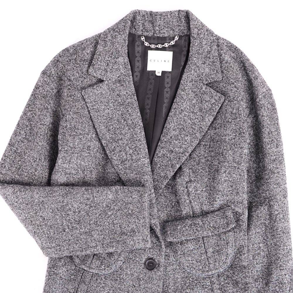 セリーヌ CELINE ジャケット テーラード ウール アウター レディース フランス製 グレー サイズ36(S相当)
