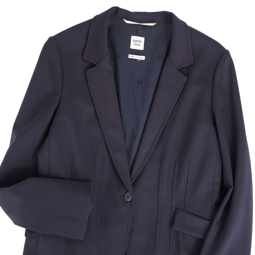 エルメス HERMES ジャケット テーラード ウール アウター レディース フランス製 ネイビー サイズ38(M相当)