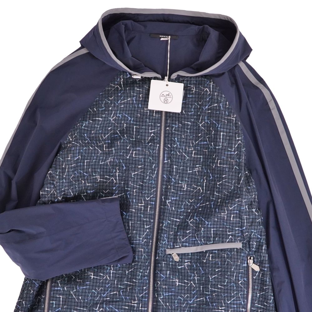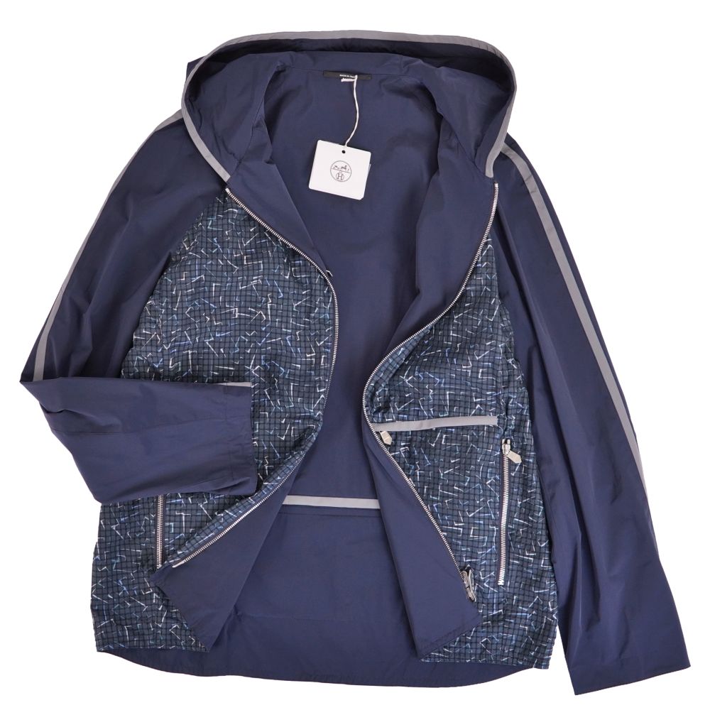 エルメス HERMES ジャケット リバーシブル ブルゾン ジップアップ 総柄 ナイロン アウター メンズ イタリア製 ネイビー サイズ48(M相当)