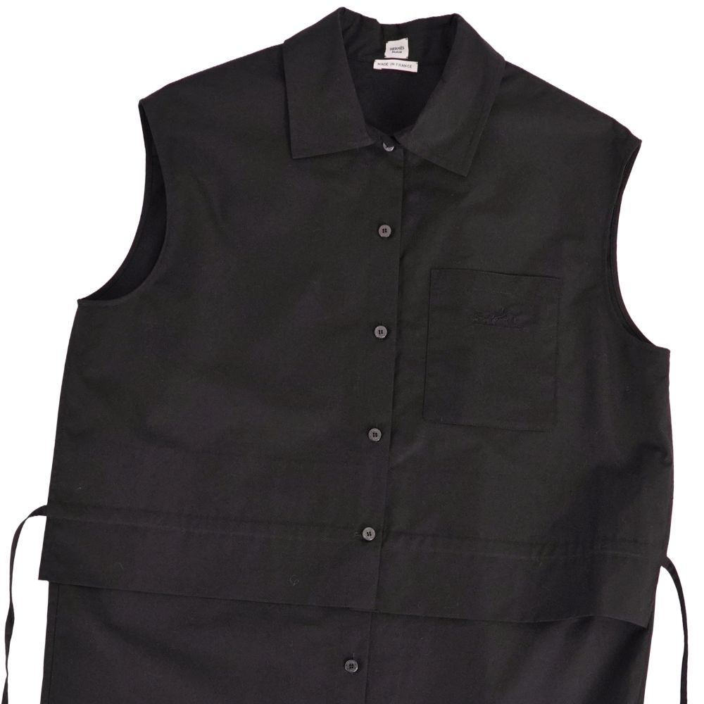 エルメス HERMES ワンピース 23SS シャツワンピース コットン トップス レディース フランス製 ブラック サイズ38(M相当)