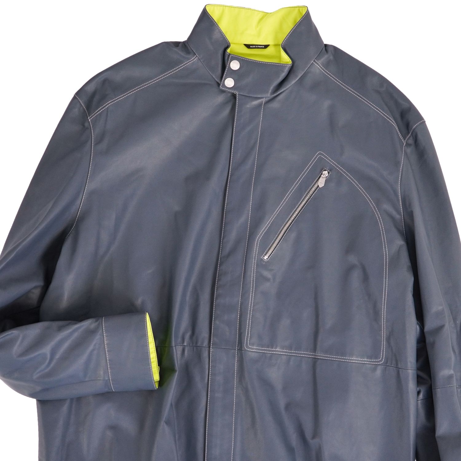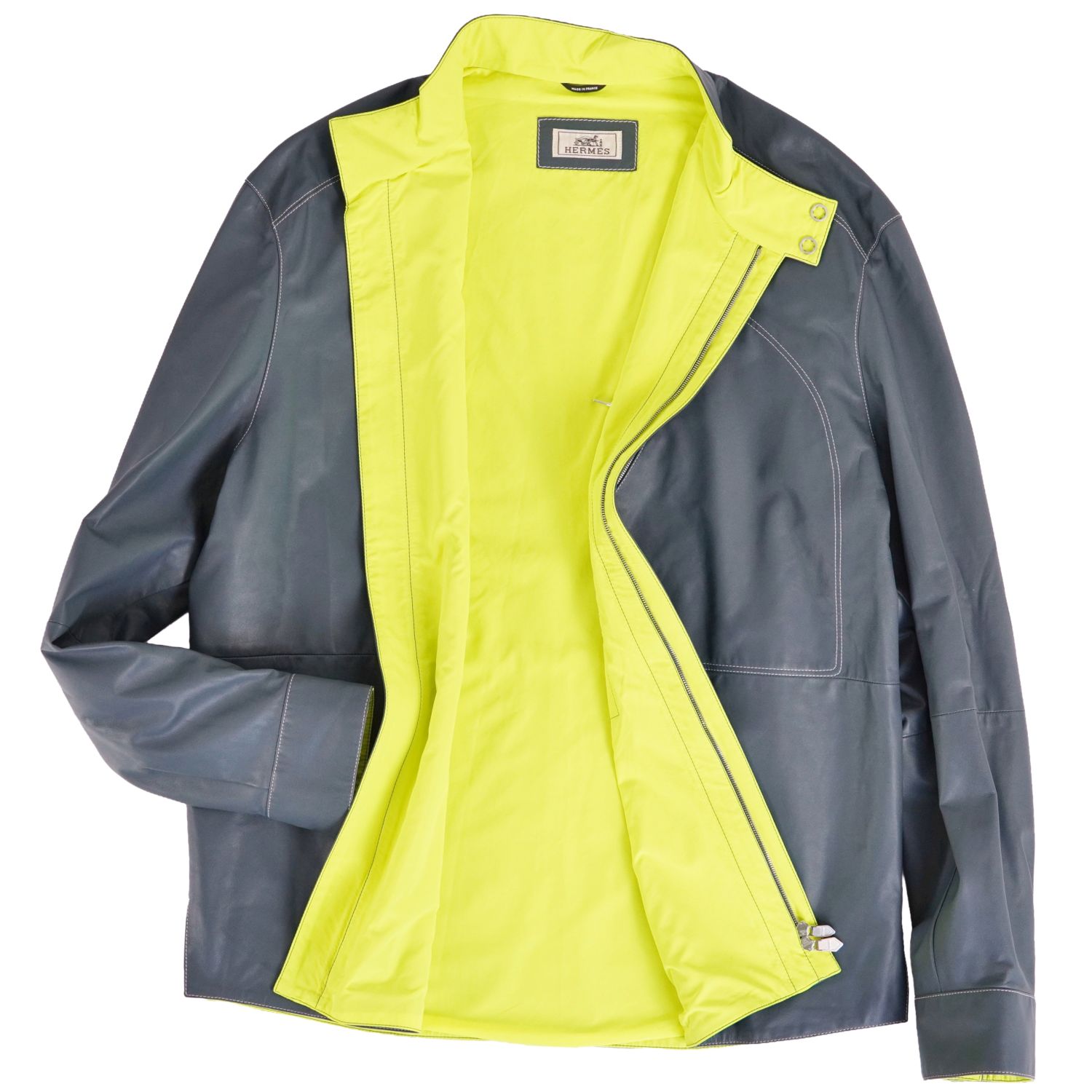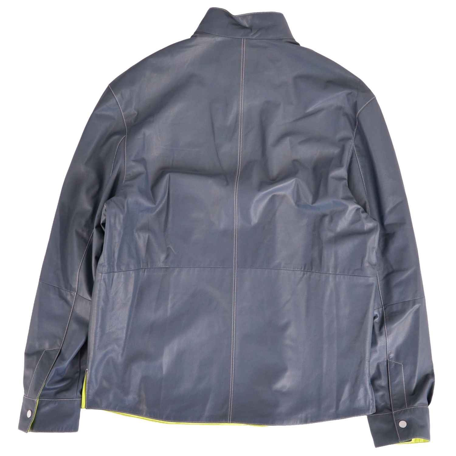 エルメス HERMES ジャケット レザージャケット スタンドカラー セリエボタン カーフスキン 牛革 アウター メンズ グレー サイズ52(L相当)
